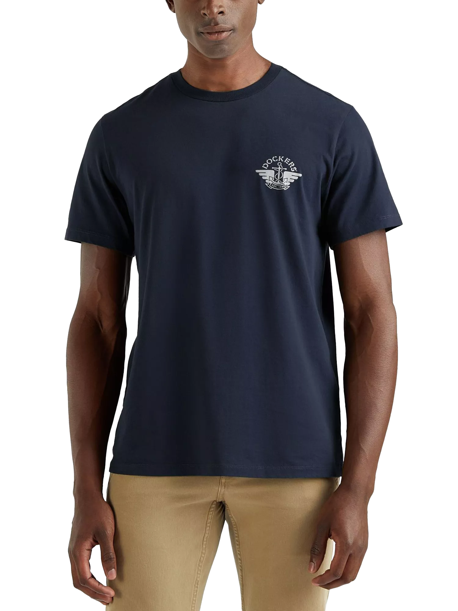 Make weekend dressing effortless with this cotton crew neck t-shirt from Dockers. Imbued with graphic appeal and an unmistakable logo, reach for off-duty denim to complete the look.