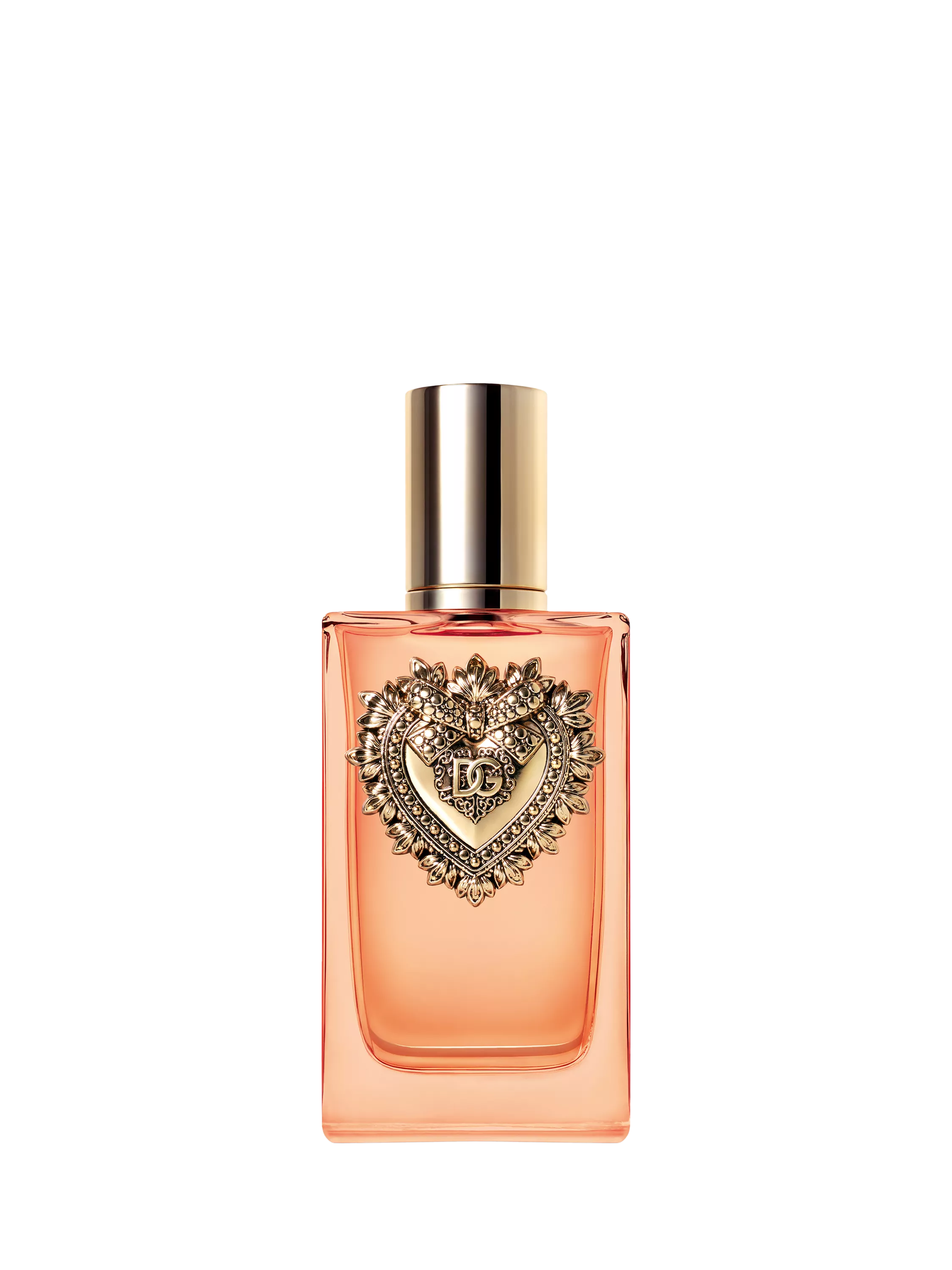 The design: Dolce & Gabbana Devotion Eau de Parfum Intense is housed in a vibrant amber-tinted glass bottle beautifully adorned with the unmistakably symbolic Sacred Heart.