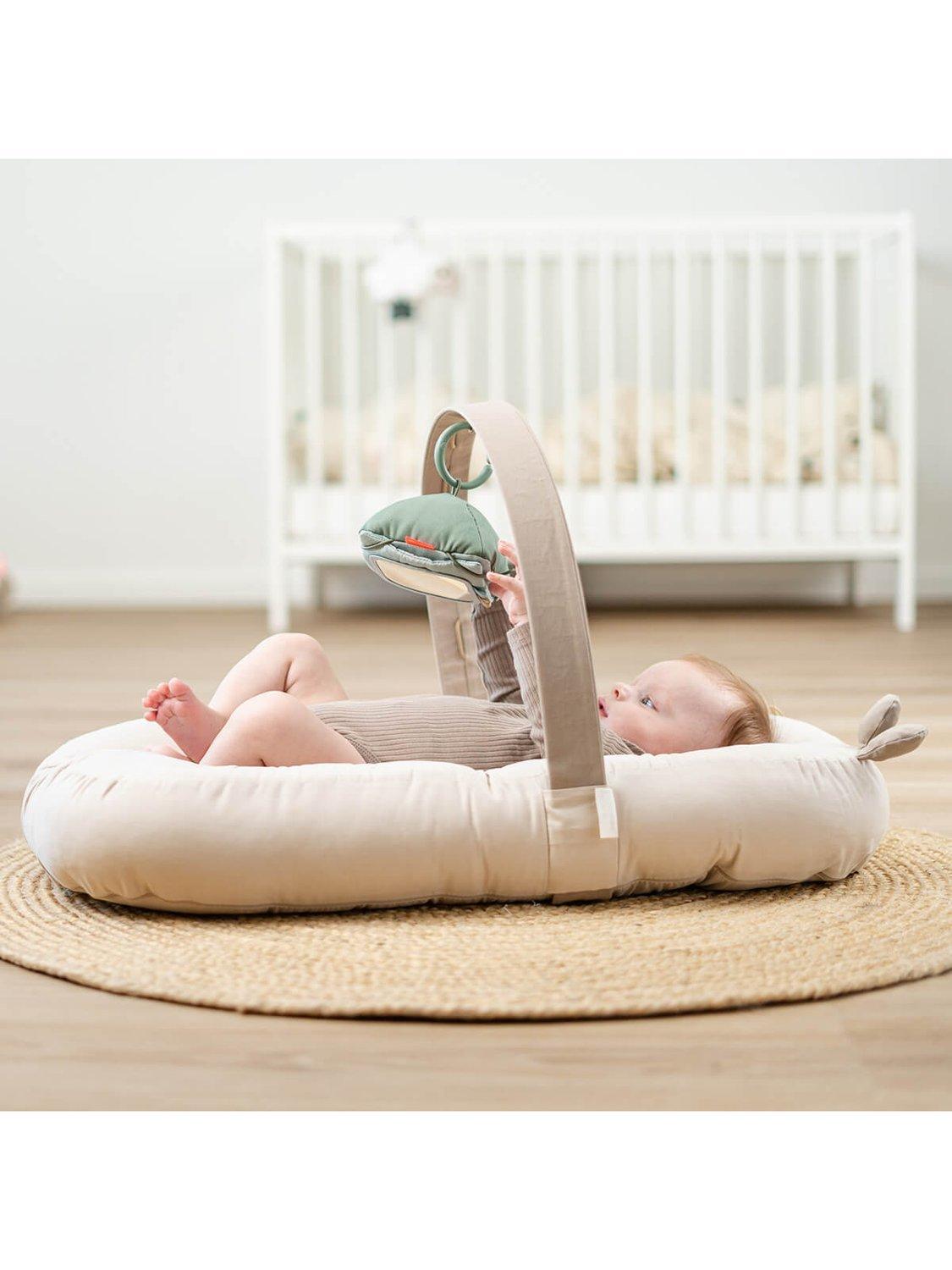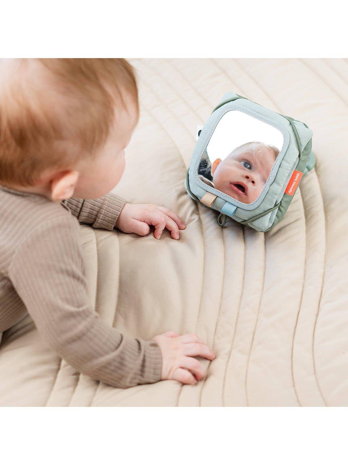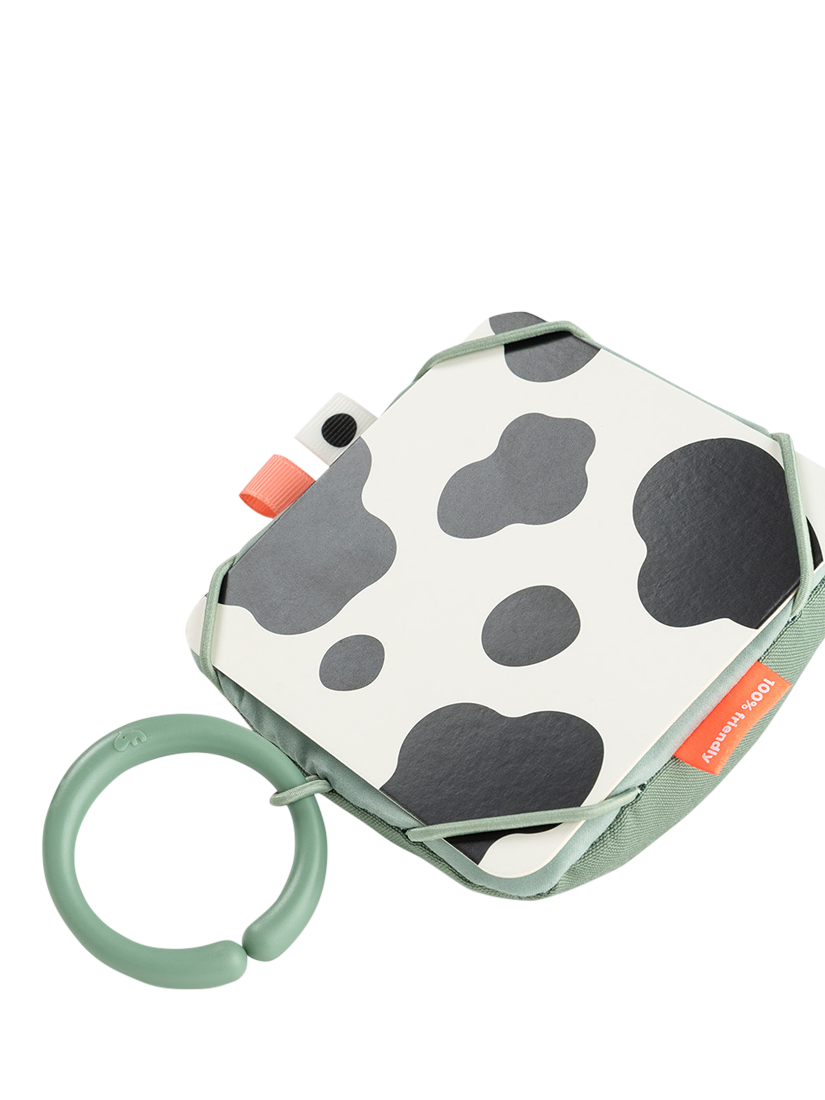 Introducing your baby to visual exploration, this textile card holder is suitable from birth, fostering newborns' sight development. The customisable frame allows personalisation by adding your own picture or drawing. Included features, like a mirror and two double-sided farm-themed cardboard contrast cards, provide varied visual stimulation. Versatile in use, hang it from an activity gym, playmat, or place it on the floor for engaging tummy time.