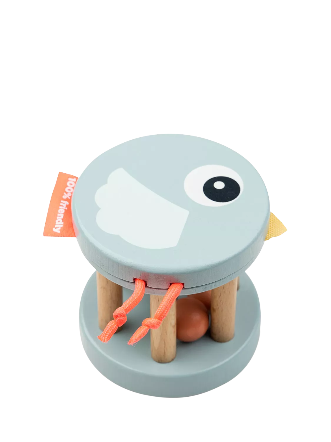 Wooden rattle with small sensory details to stimulate your baby. With the wooden rattle, your baby can practice grasping, holding, and moving it from hand to hand, as well as listen to the sound of the beads. Use to encourage tummy time and head movement from side to side.