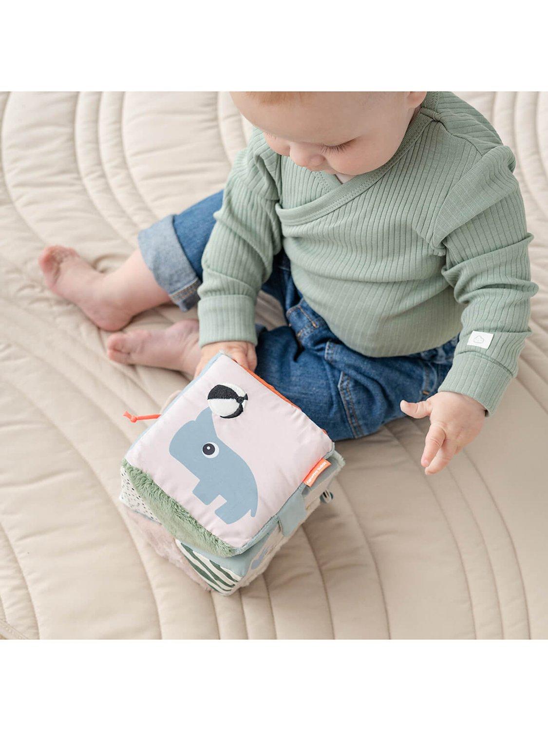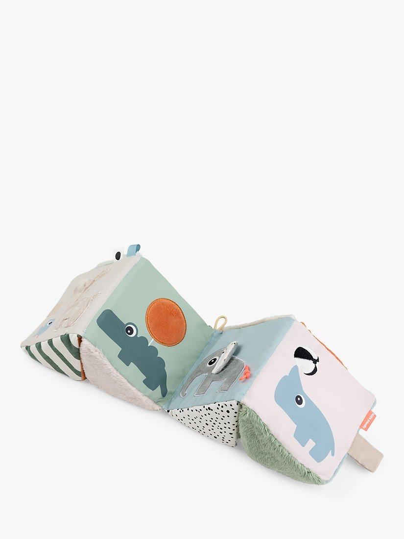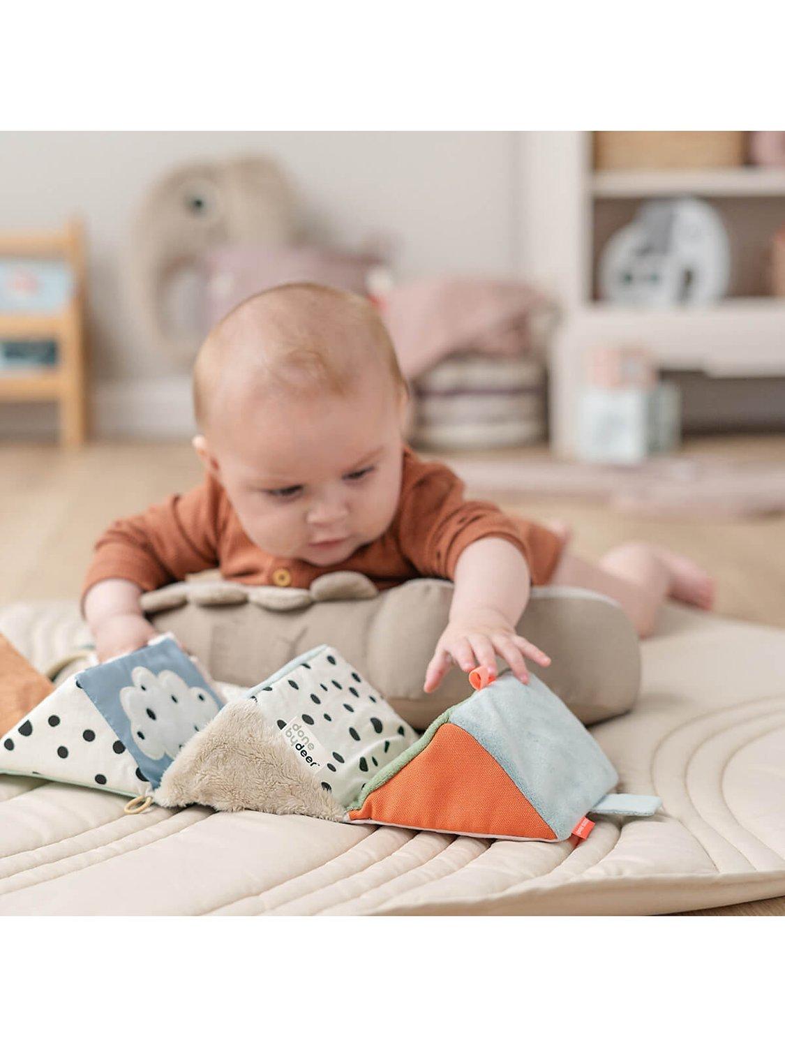 There is an elastic loop for a toy link that makes it easy to attach to the pram and take wherever you go or fix to an activity gym for play throughout the day. The Deer friends fold-out activity cube is a stunning mix of colours and textures to keep your baby entertained for hours.