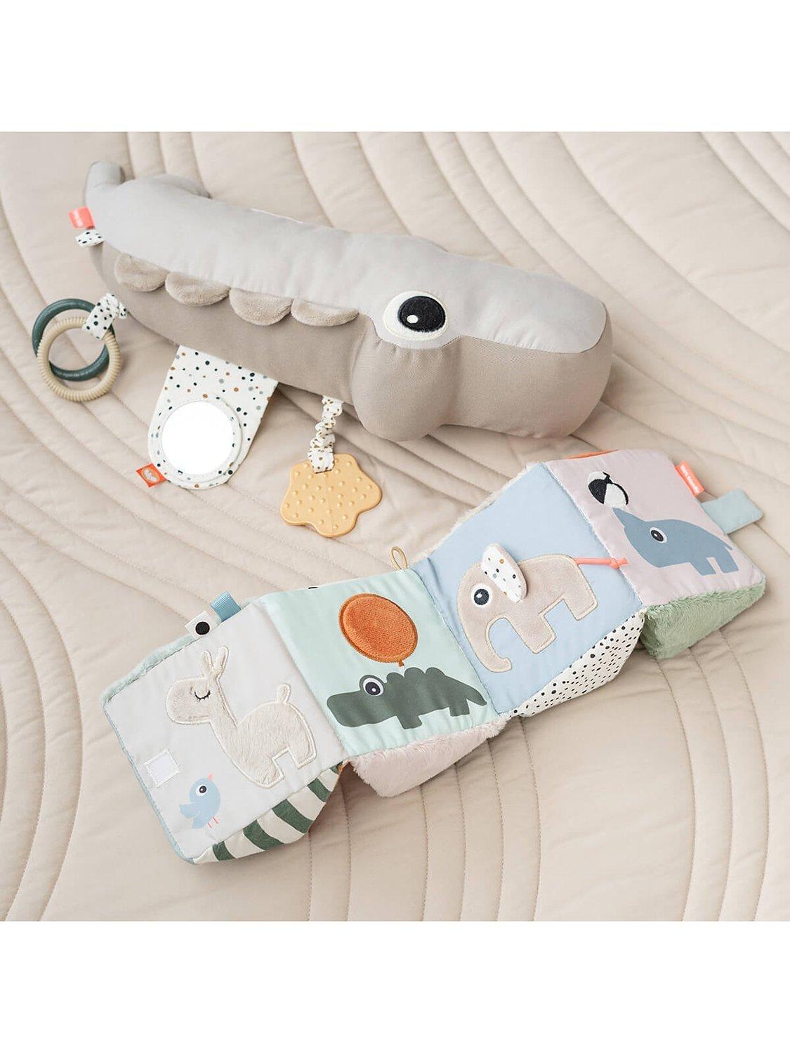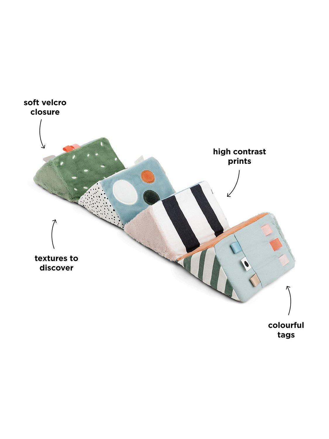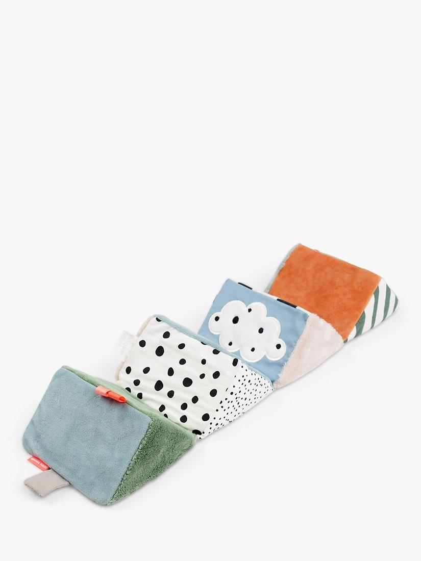 There is an elastic loop for a toy link that makes it easy to attach to the pram and take wherever you go or fix to an activity gym for play throughout the day. The Deer friends fold-out activity cube is a stunning mix of colours and textures to keep your baby entertained for hours.
