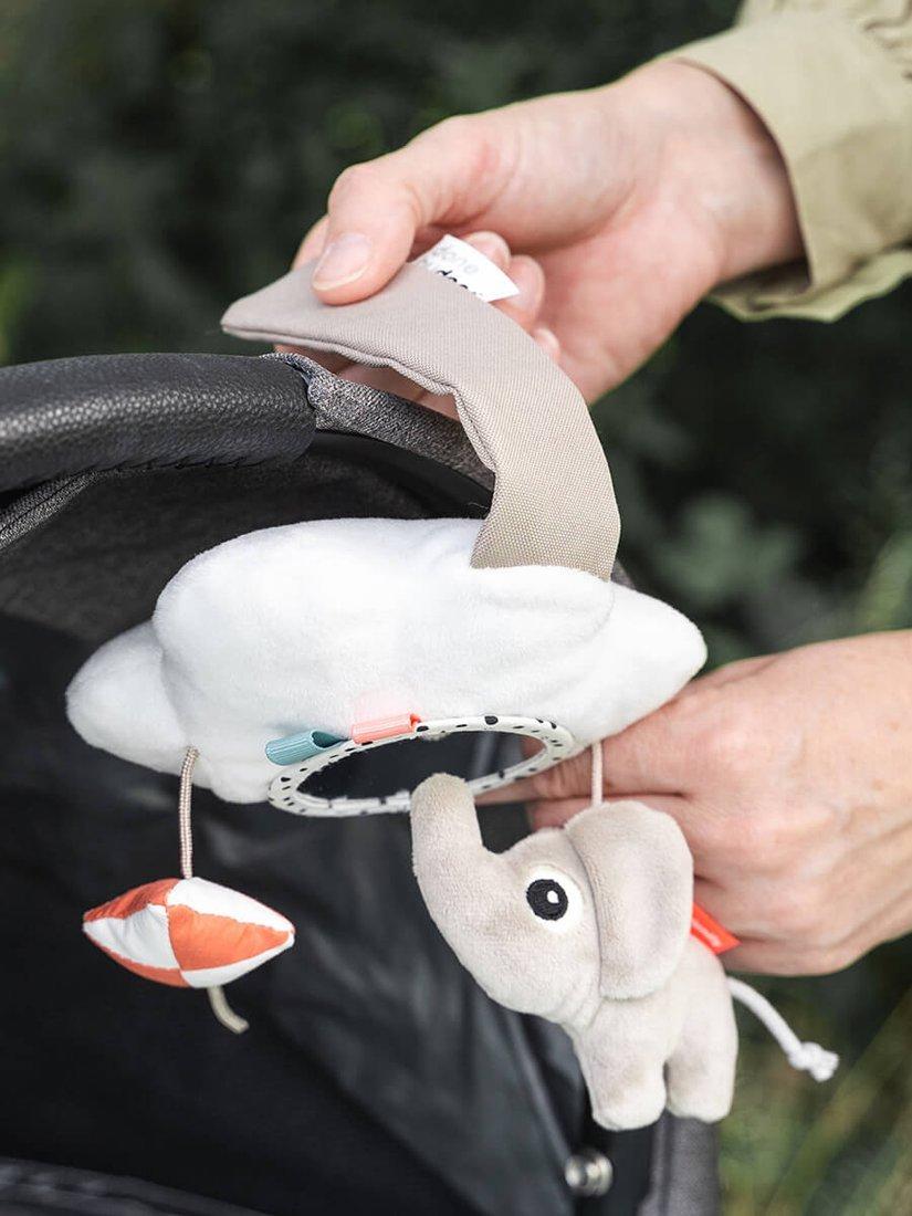 A pram mobile to keep your little one entertained and engaged while on the go. Featuring Elphee, the kite, and a mirror for fun reflections, it captures your baby’s attention and sparks curiosity. The mobile easily attaches to the pram with a magnetic attachment, making it simple to set up wherever you are. With light colours and playful contrasts, it offers visual stimulation, while Elphee adds comfort and joy as your baby explores the world around them.