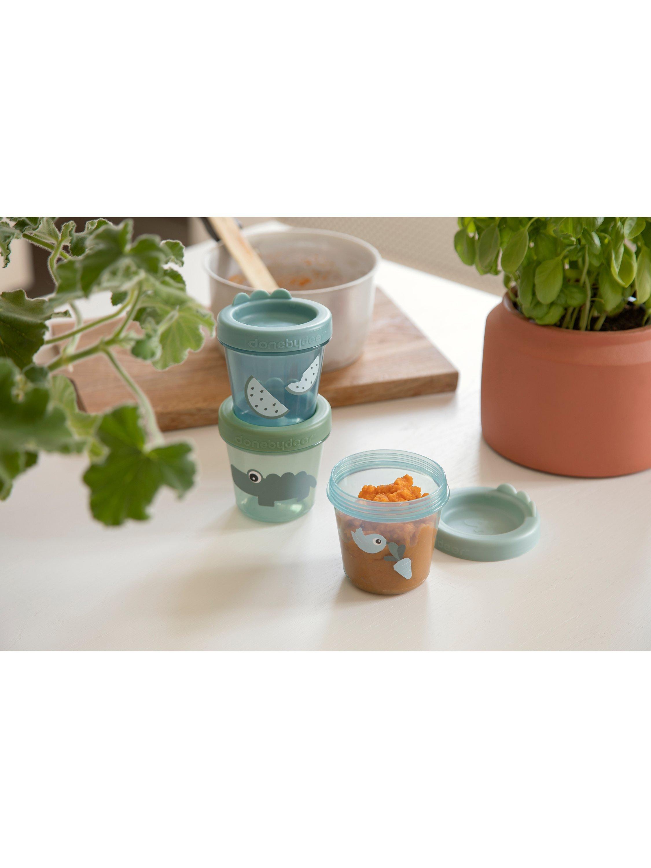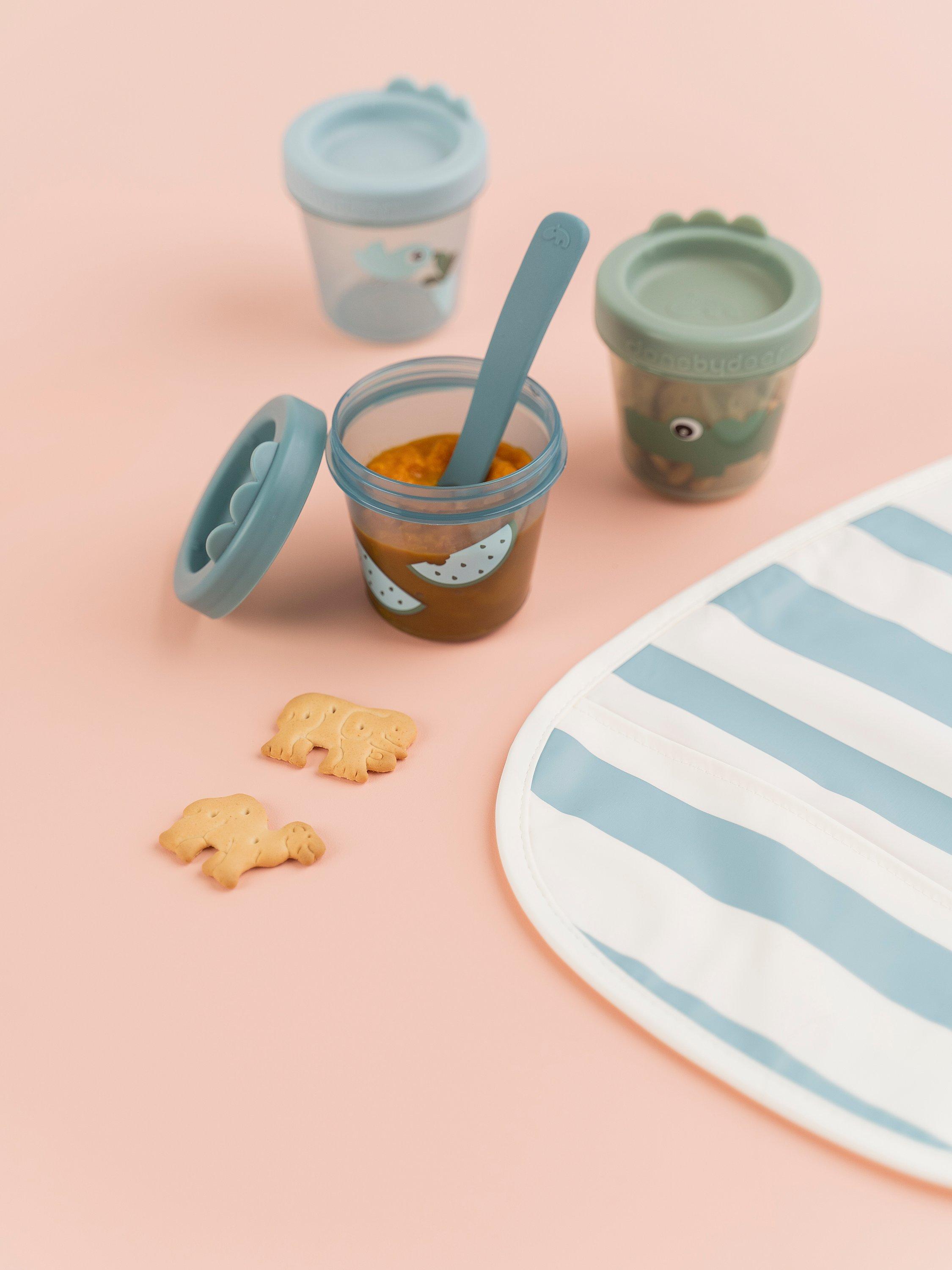 They are perfect for bringing snacks to preschool and beyond or for saving homemade porridge in the freezer. The translucent containers are stackable and easy to store and the screw-on lid makes them leakproof and airtight. They have cute details with Croco lumps on the lid and prints of Deer friends and their favourite snacks. Let your little one enjoy a small meal with our Deer friends.