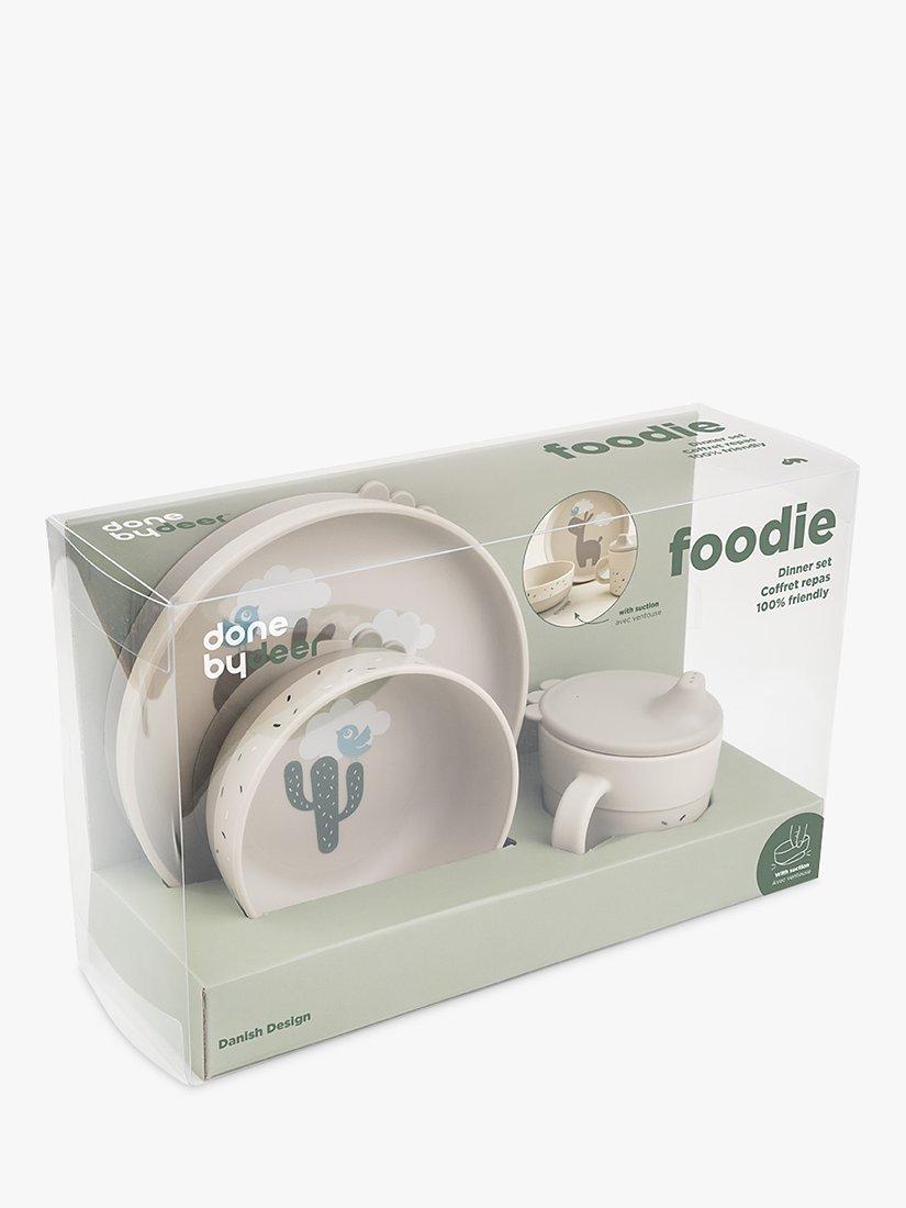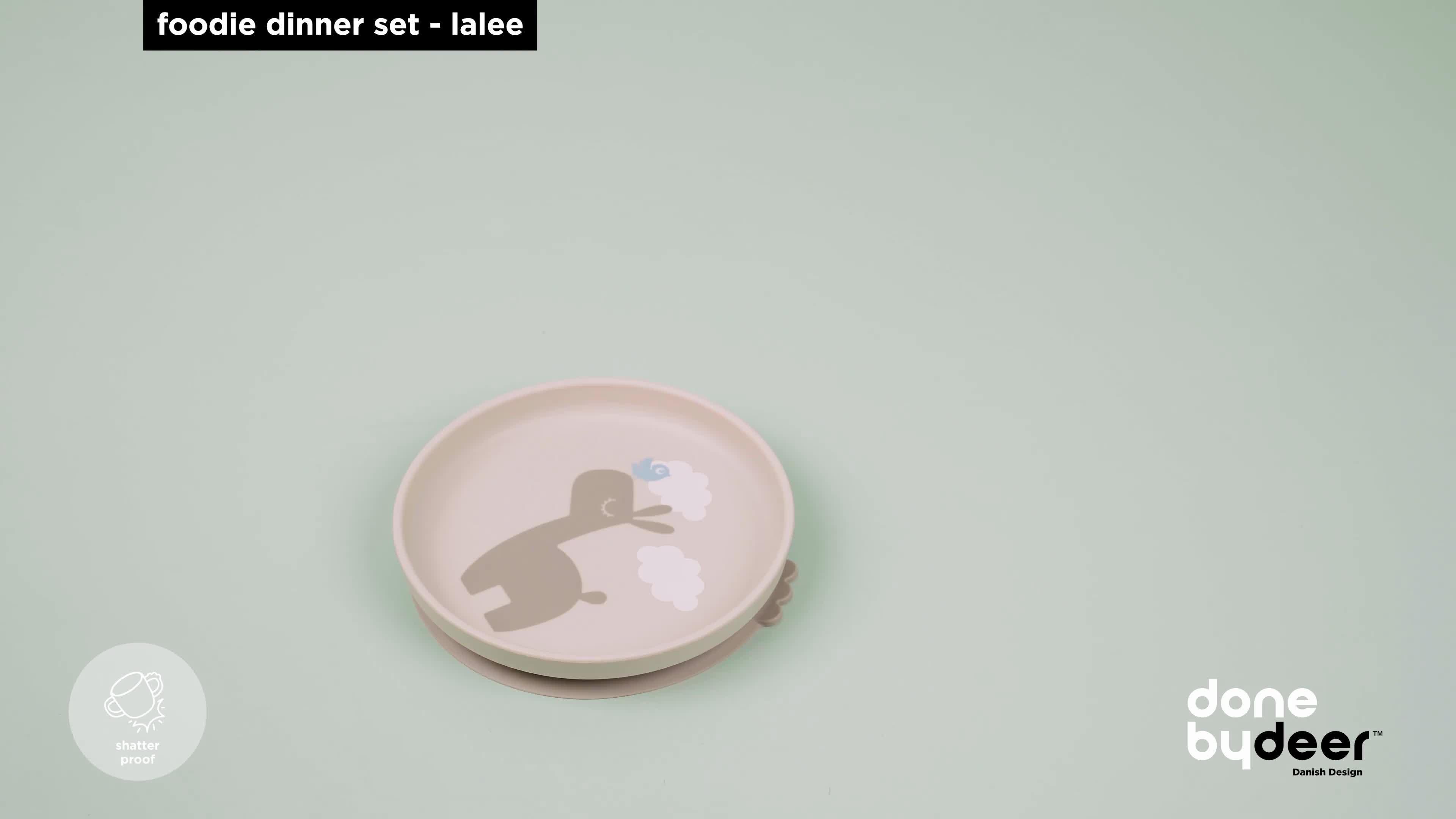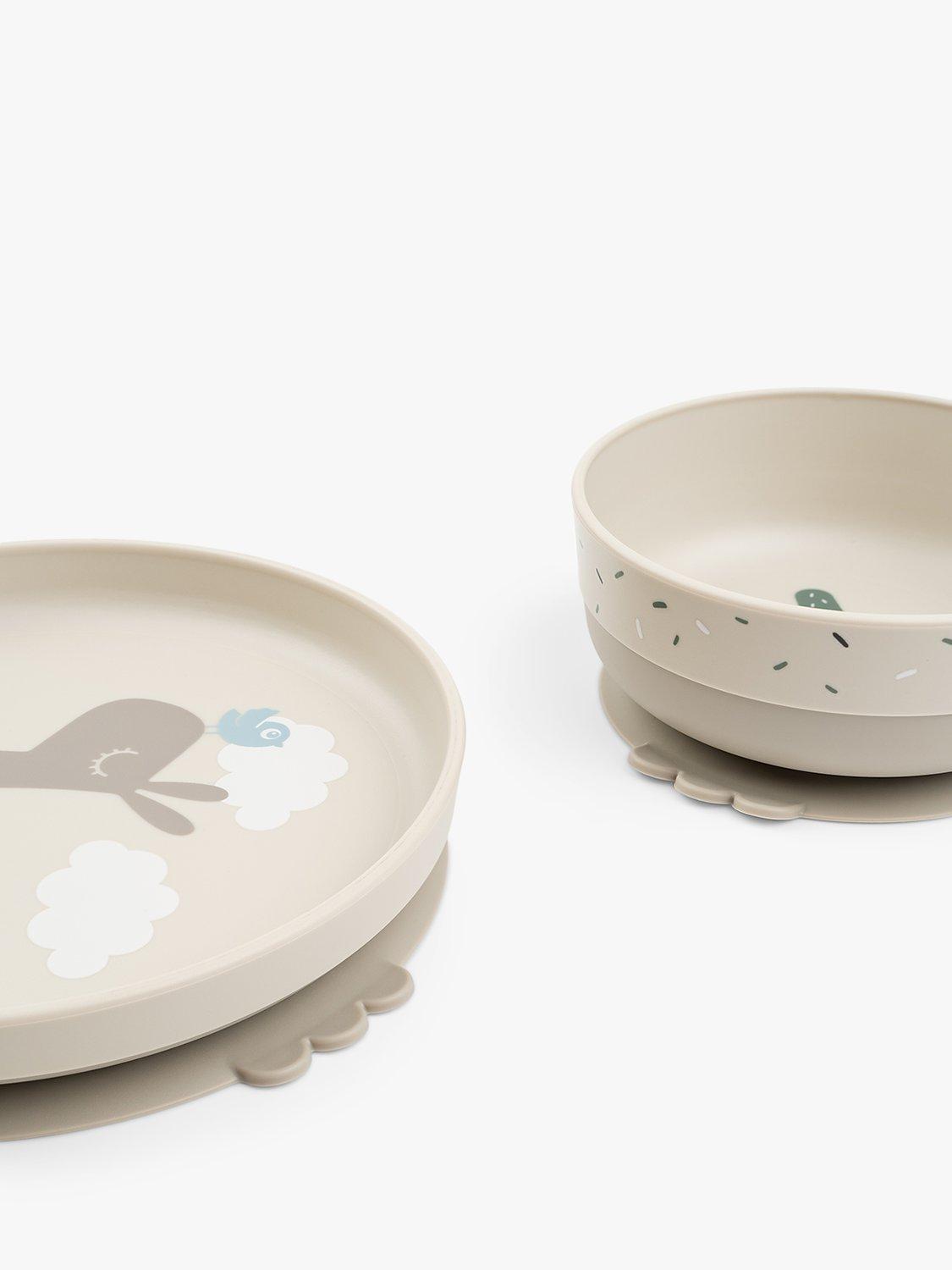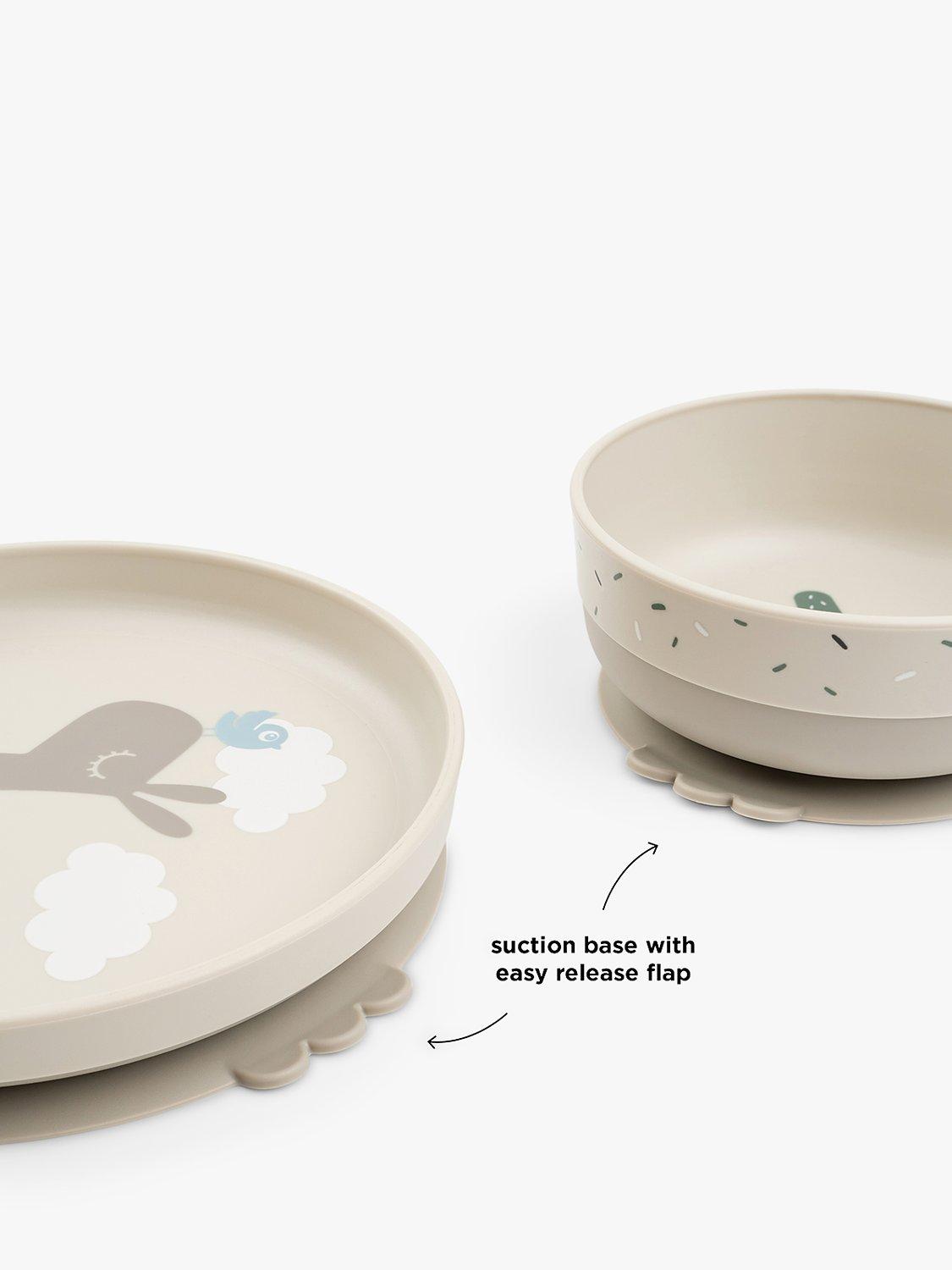 Let your little eater enjoy a meal from this cute and practical Foodie dinner set. Its playful print will bring joy to every meal. The plate and bowl's high edge and practical stick and stay suction base will help your child to eat on their own.