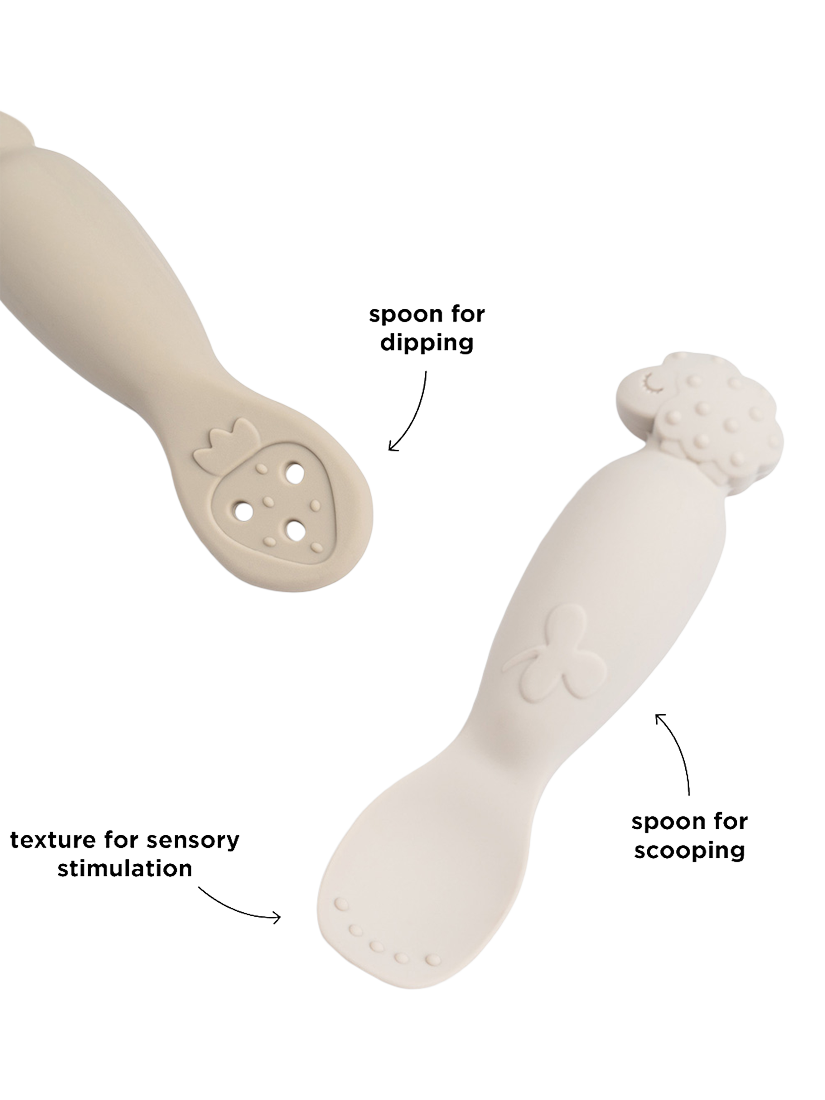Soft spoons designed for your little one to explore food at their own pace. With one spoon for dipping and one for scooping, the shapes and textures are perfect for tiny hands to grasp and use. Made from food-grade silicone, free from BPA and harmful substances, these spoons are safe for both the microwave and dishwasher. Durable and long-lasting, they’ll stand up to everyday use.