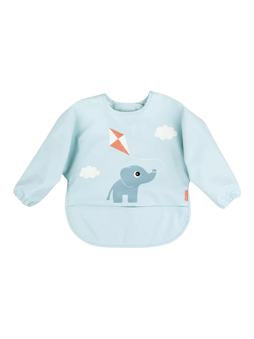 With a cute motif of Elphee flying a kite the waterproof surface protects clothes from spills and messes and can easily be wiped clean. The addition of protective sleeves offers extra coverage, keeping your child's outfit safe with elasticated cuffs. It's also equipped with a practical pocket to catch dropped food. The adjustable closure with snap buttons ensures a secure and comfortable fit for your little one.