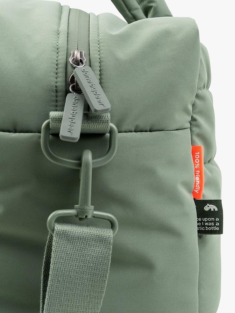 The bag and changing mat are made of recycled polyester made from 48 used PET bottles.