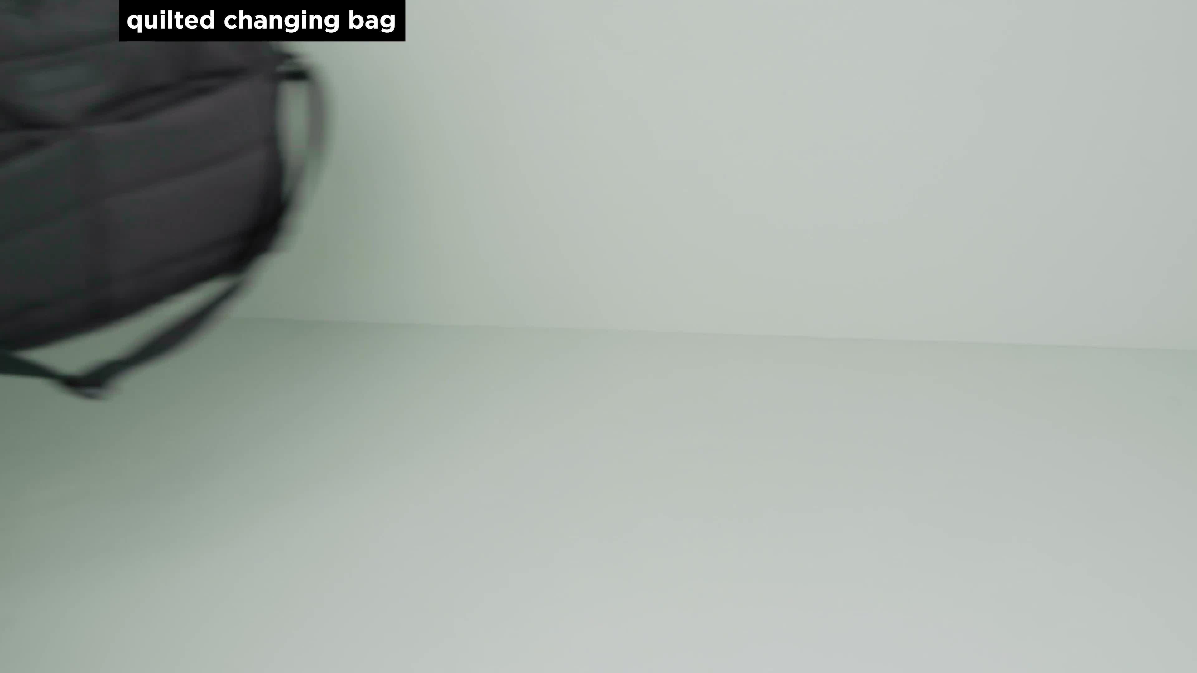 Quilted changing bag with enough space to bring all you need for your little one and yourself. The weatherproof surface protects your essentials from getting wet. A changing mat is included, so don't worry when you're changing nappies on the go.