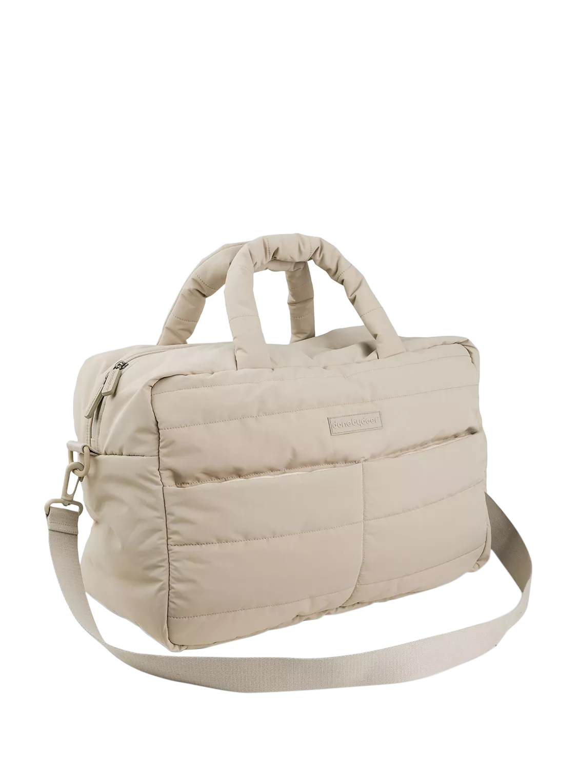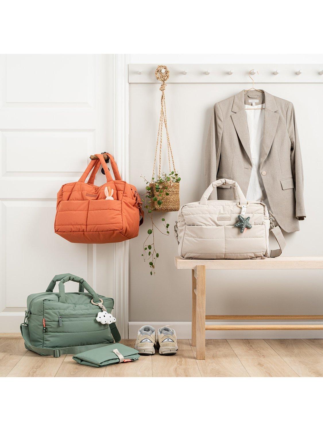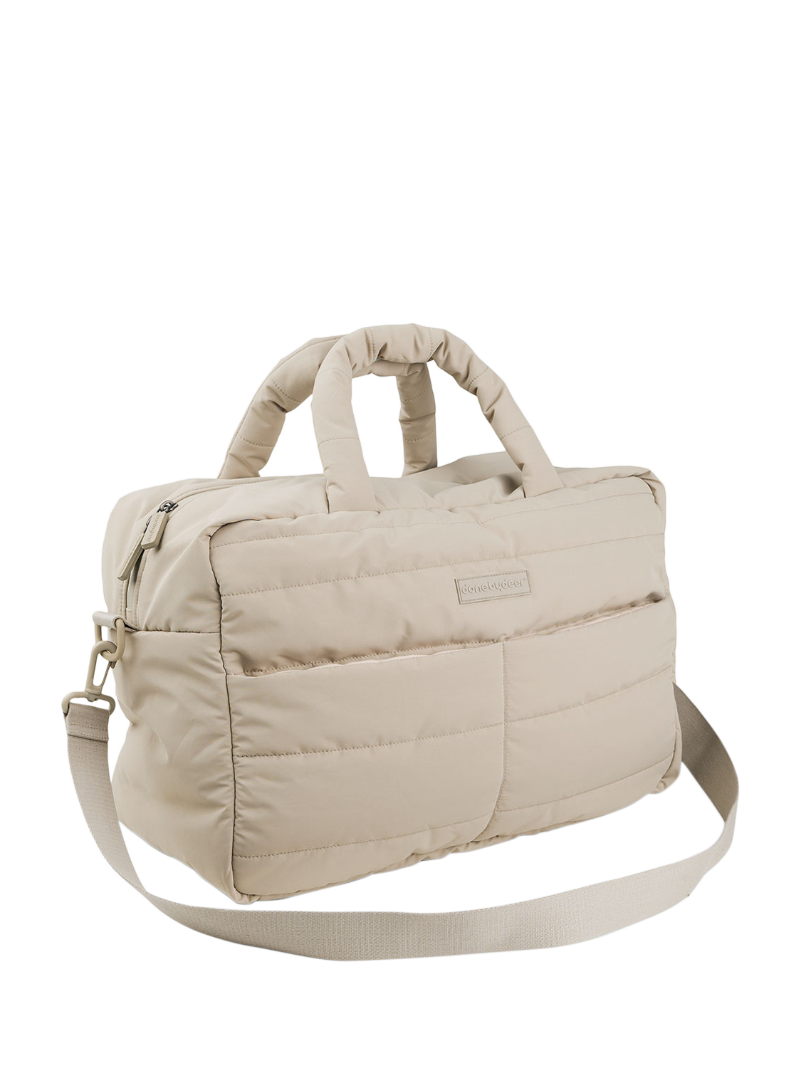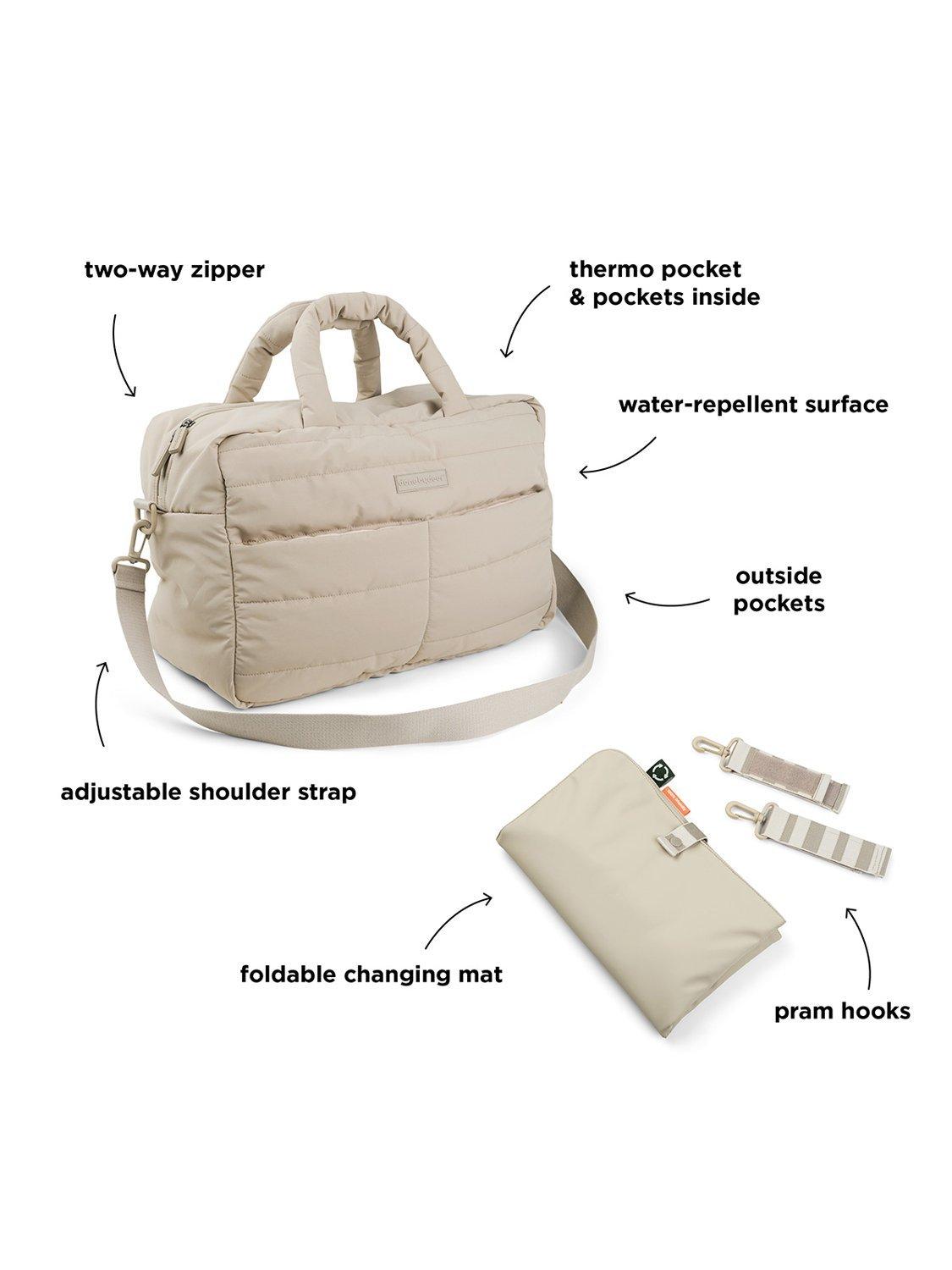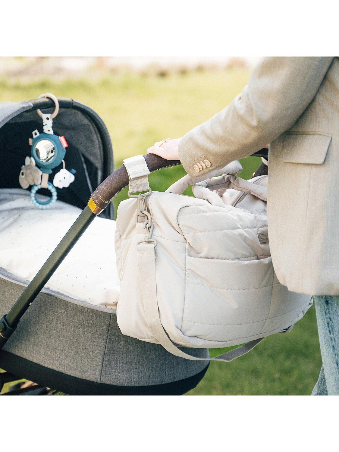 Quilted changing bag with enough space to bring all you need for your little one and yourself. The weatherproof surface protects your essentials from getting wet. A changing mat is included, so don't worry when you're changing nappies on the go.