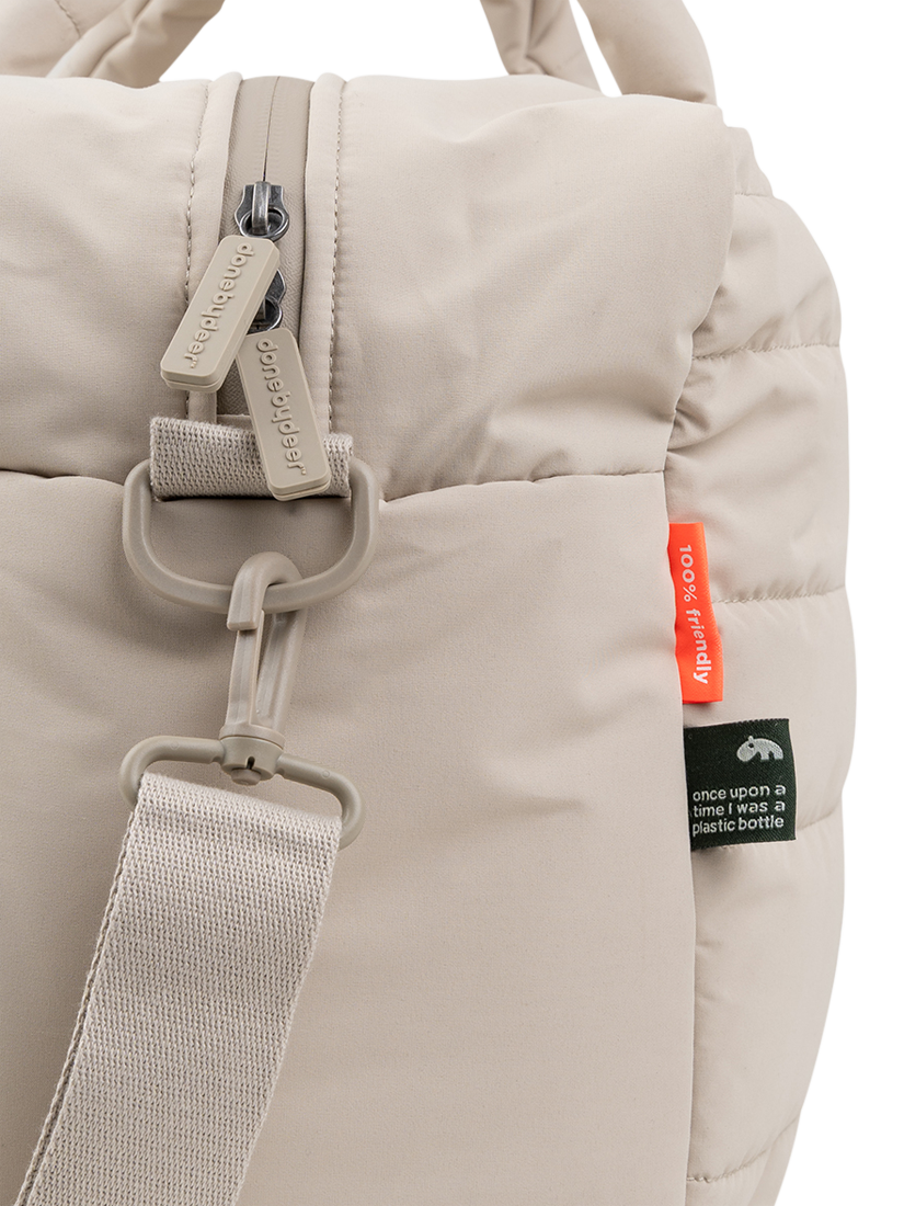 The bag and changing mat are made of recycled polyester made from 48 used PET bottles.