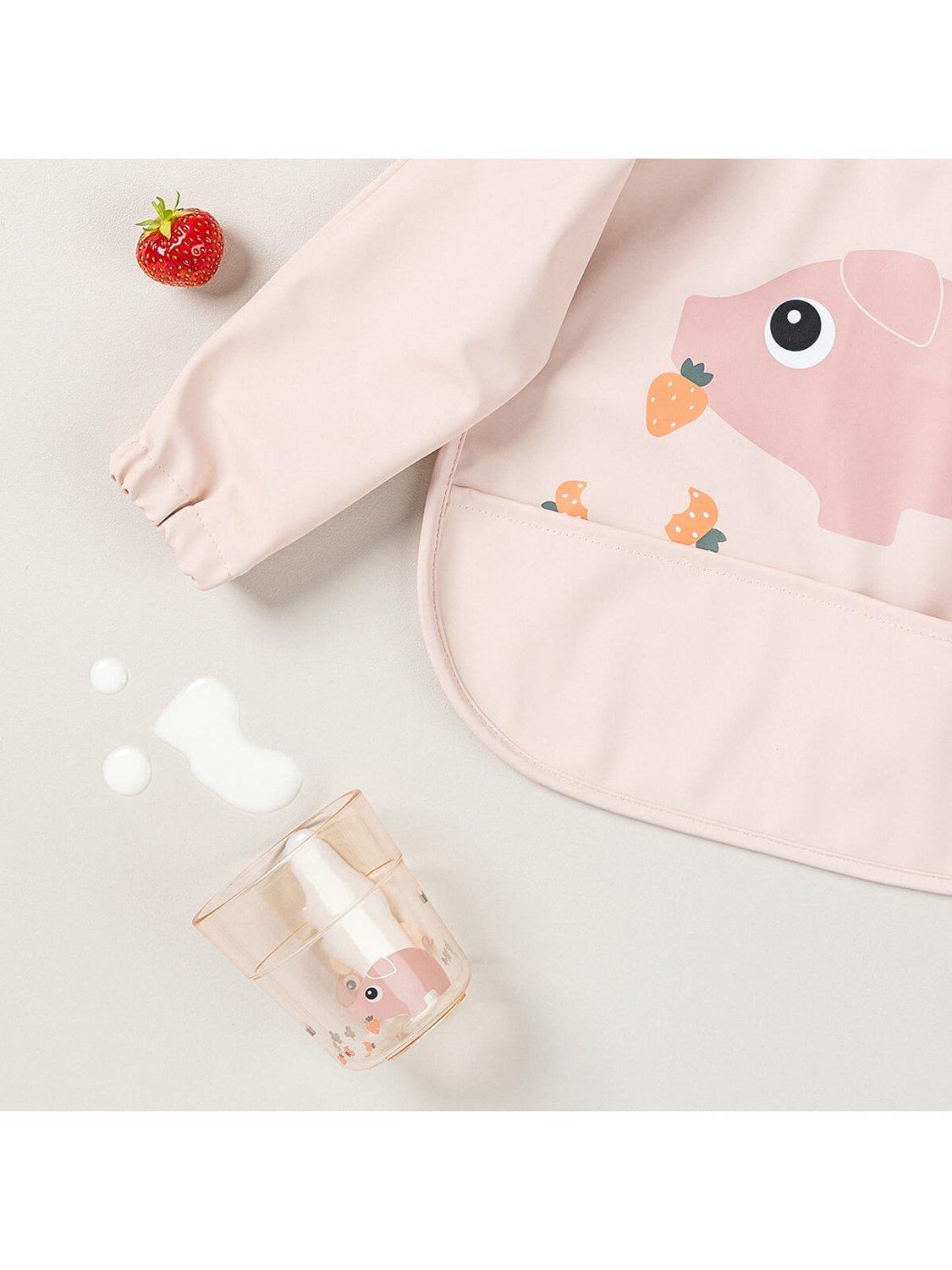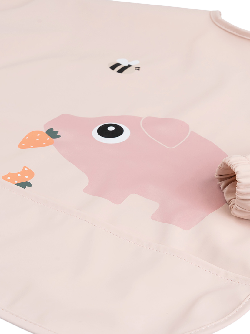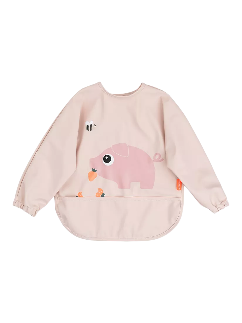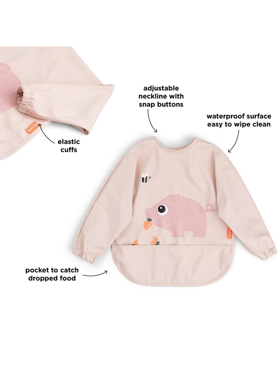 The soft, sleeved pocket bib will protect your little eater at mealtime or when it's time to get creative with painting, play-dough and such. A handy pocket is there to catch dropped food and the adjustable double closure makes sure that the bib fits both babies and toddlers. The water-repellent surface and sleeves ensure clothes stay dry and clean, while also making it super easy to wipe down.
