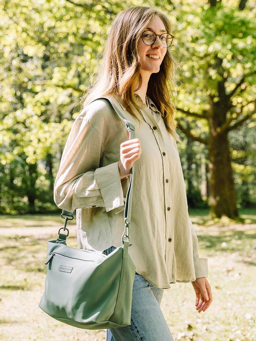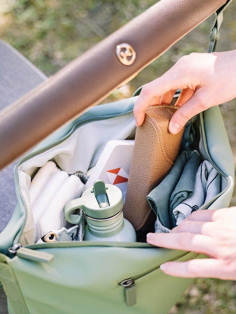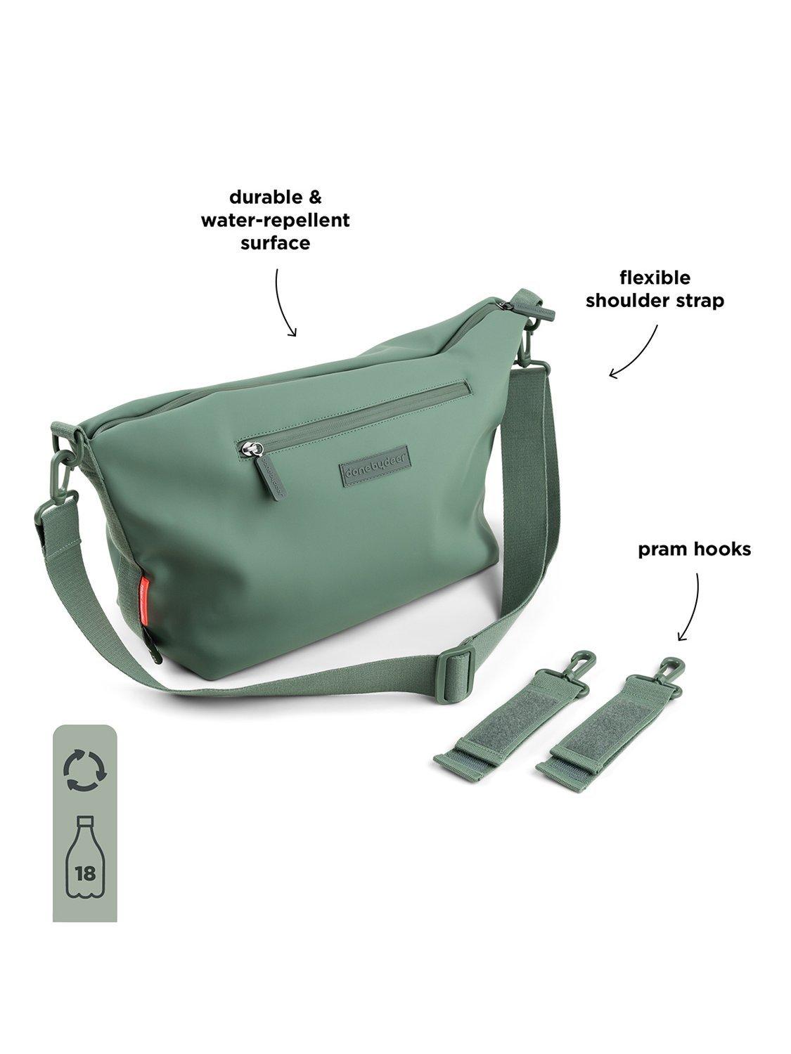 This stroller bag is made from recycled polyester. 18 recycled PET bottles were used when manufacturing this product.