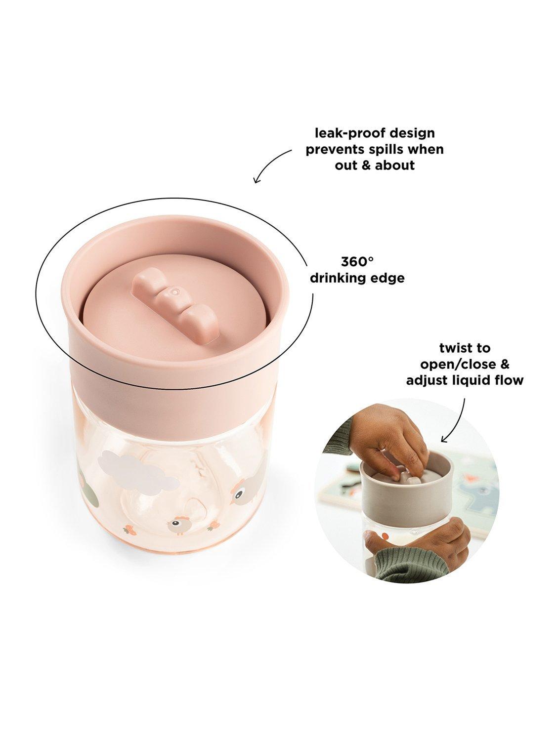 Done by Deer's 360° learning cup allows your little one to sip from any side of the cup, helping to support those early drinking skills. The twistable lid adjusts the flow of liquid to match the child’s drinking stage, making sure the flow is not too fast or too slow. The leak-proof design prevents spills when out and about and the titled rim supports smooth and confident sipping.