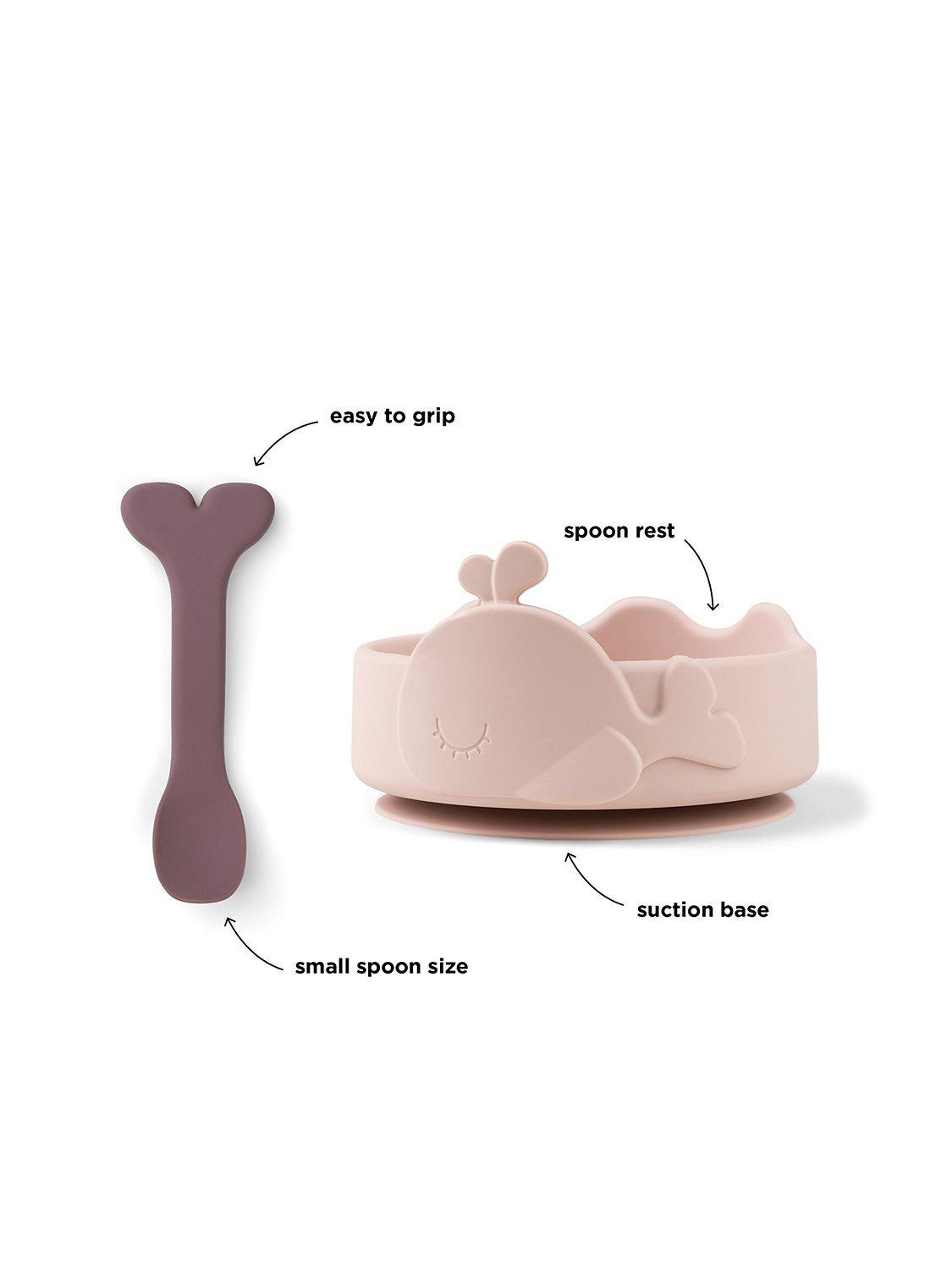 The silicone Stick & Stay bowl and spoon are designed for little eaters to explore the world of food. Wally takes a swim around the bowl and the tail on the spoon is ready to entertain by diving into the food. The set has a perfect size for new eaters.