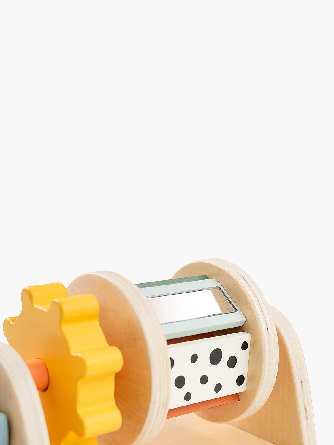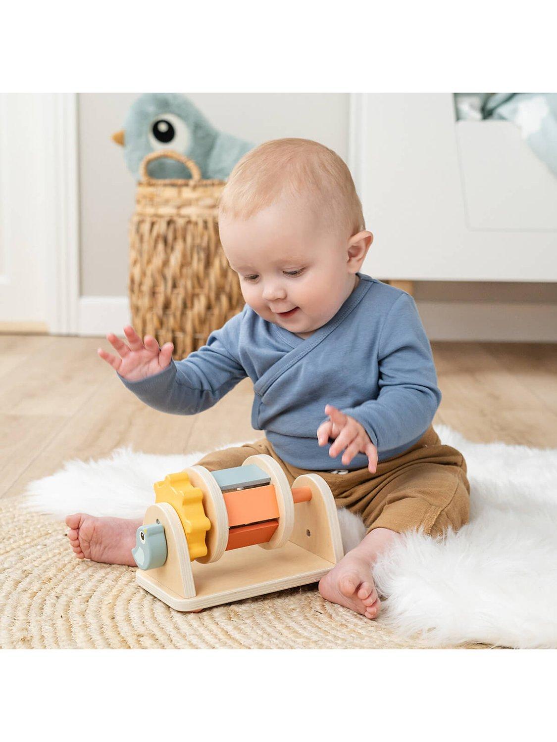 Suitable from approximately 3 months of age, it is perfect for when your little one is ready for some tummy time fun or can sit up. The toy encourages your baby to lift their arms to spin and slide the wheels, there are playful shapes for little fingers to explore lots of fun colours and a mirror for visual stimulation. The sound of the beads inside the wheel increases baby's curiosity and the anti-slip feet prevent the spinner from tipping over.