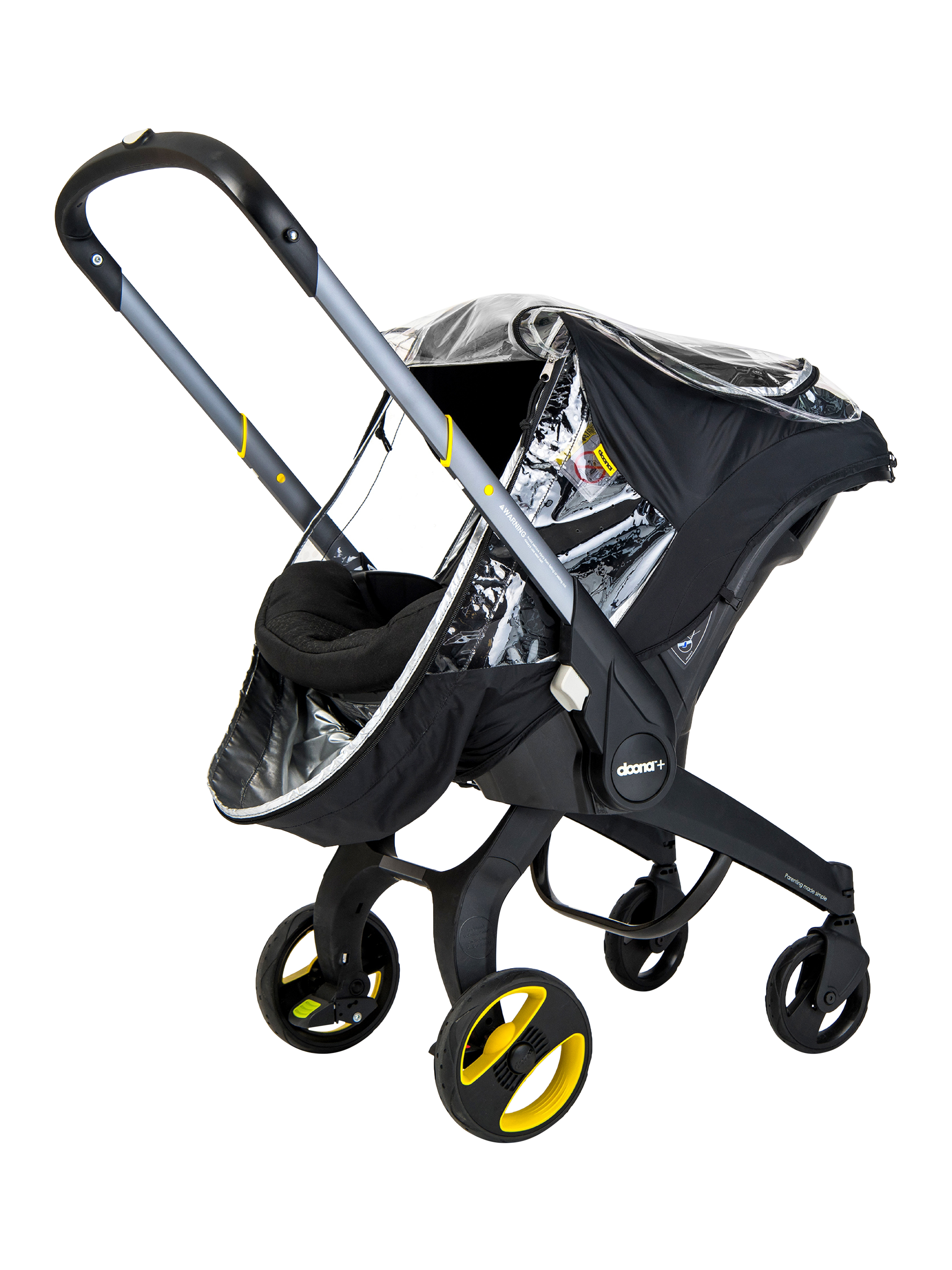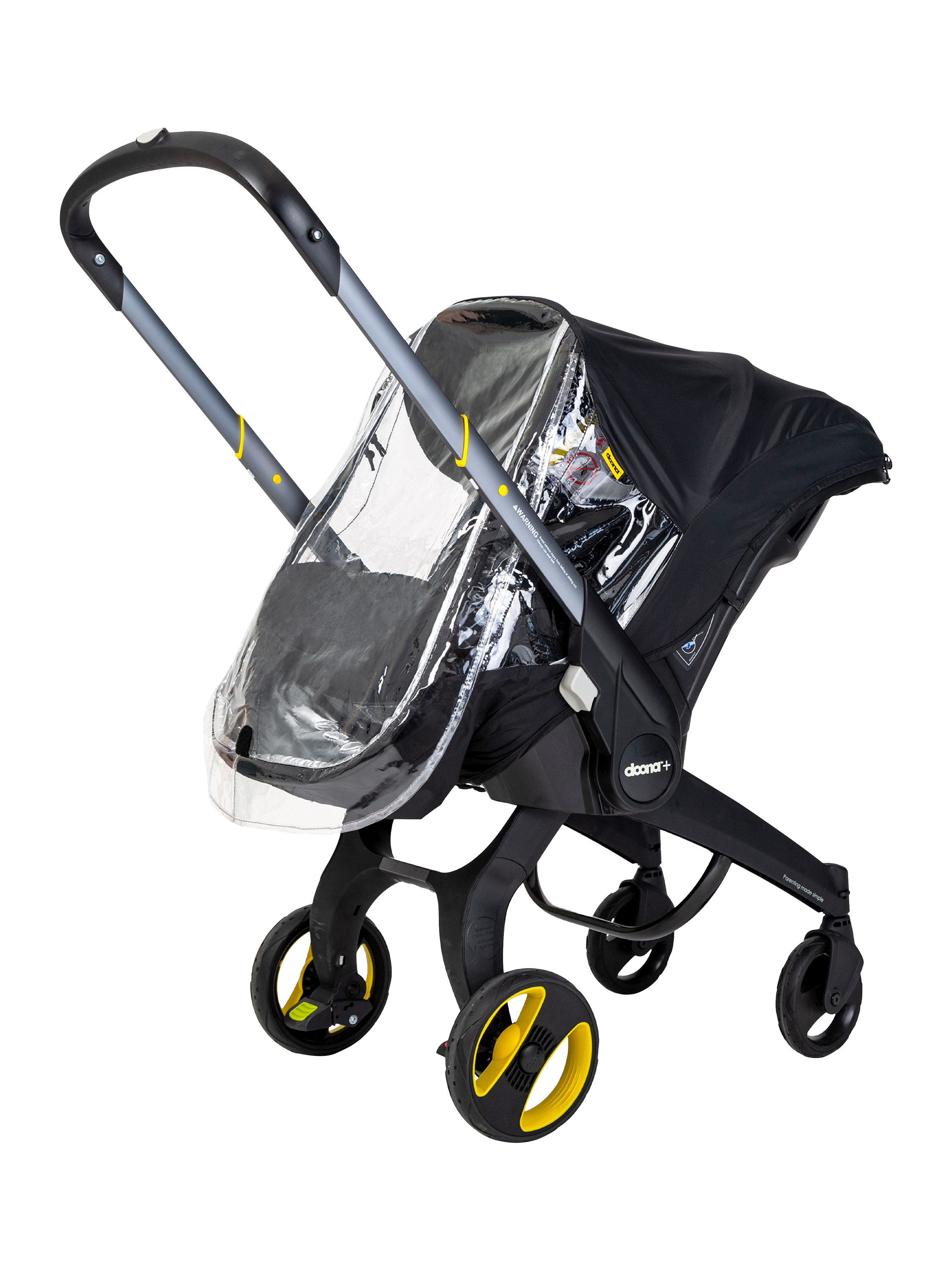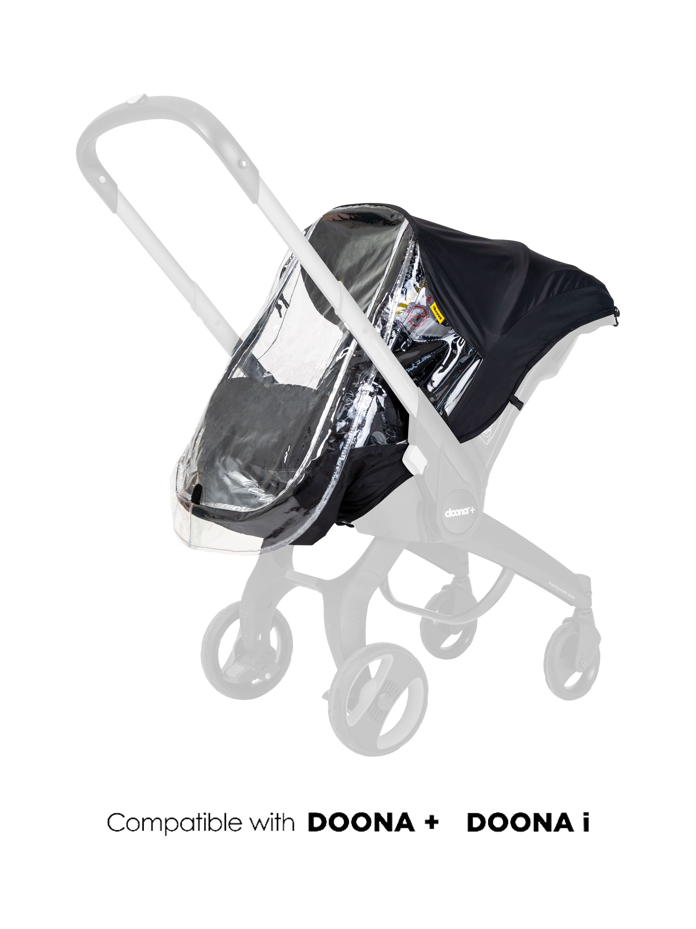 The wide zipper opening provides easy access to your baby. With the simple Doona snap-on connectors, attaching and removing the rain cover to your stroller is quick and easy. A compact carry bag for easy storage when not in use is included.