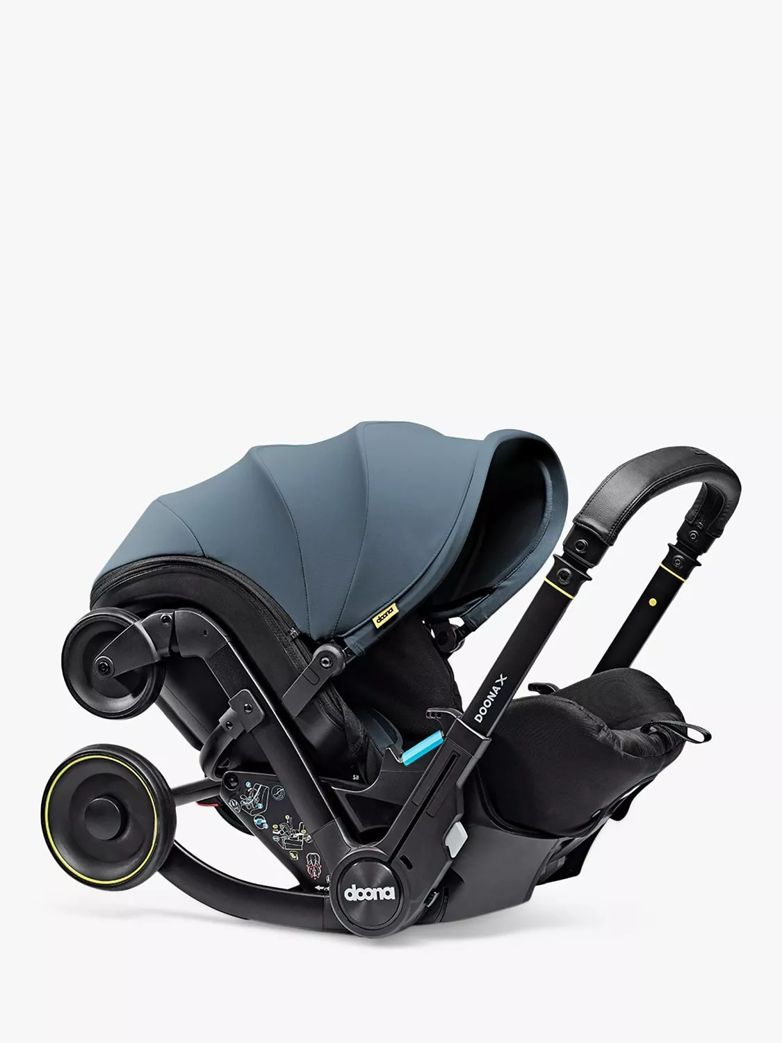 Doona X is a fully integrated travel system, allowing you to move from car seat to stroller in seconds. The sleek and stylish design allows you to navigate the streets at ease, without disturbing your sleeping child when hopping in a car, travelling by bus or walking up the stairs. The revolutionary car seat and stroller provides a safe and practical solution for parents on-the-go.
