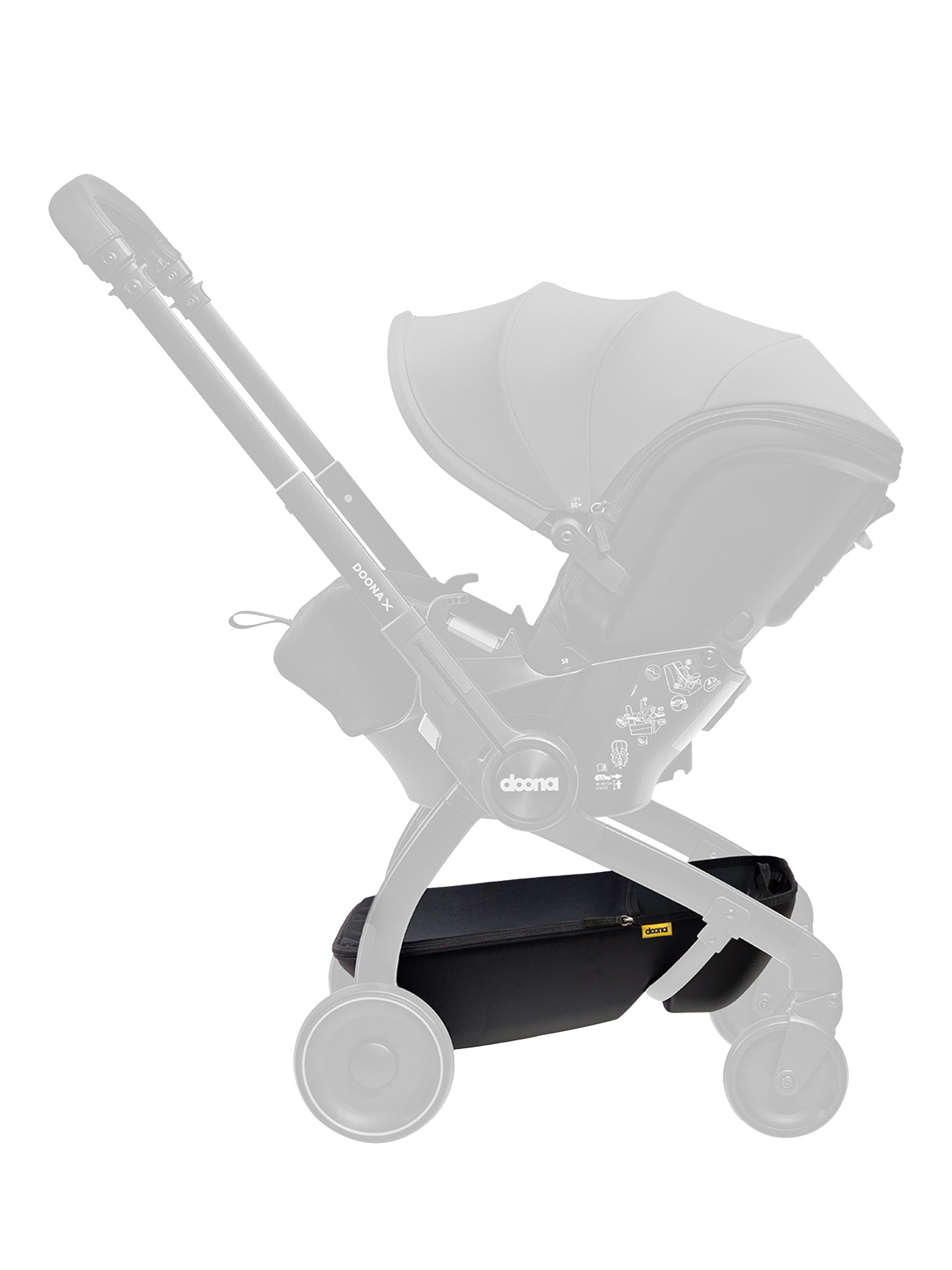 The Doona X Storage Basket is designed to provide additional storage when using your Doona in stroller mode. Specifically designed to fit the Doona X (sold separately), its unique structure includes a rigid plastic shell that protects your belongings. Attaching and removing the Storage Basket is quick and easy, providing added convenience on the go.