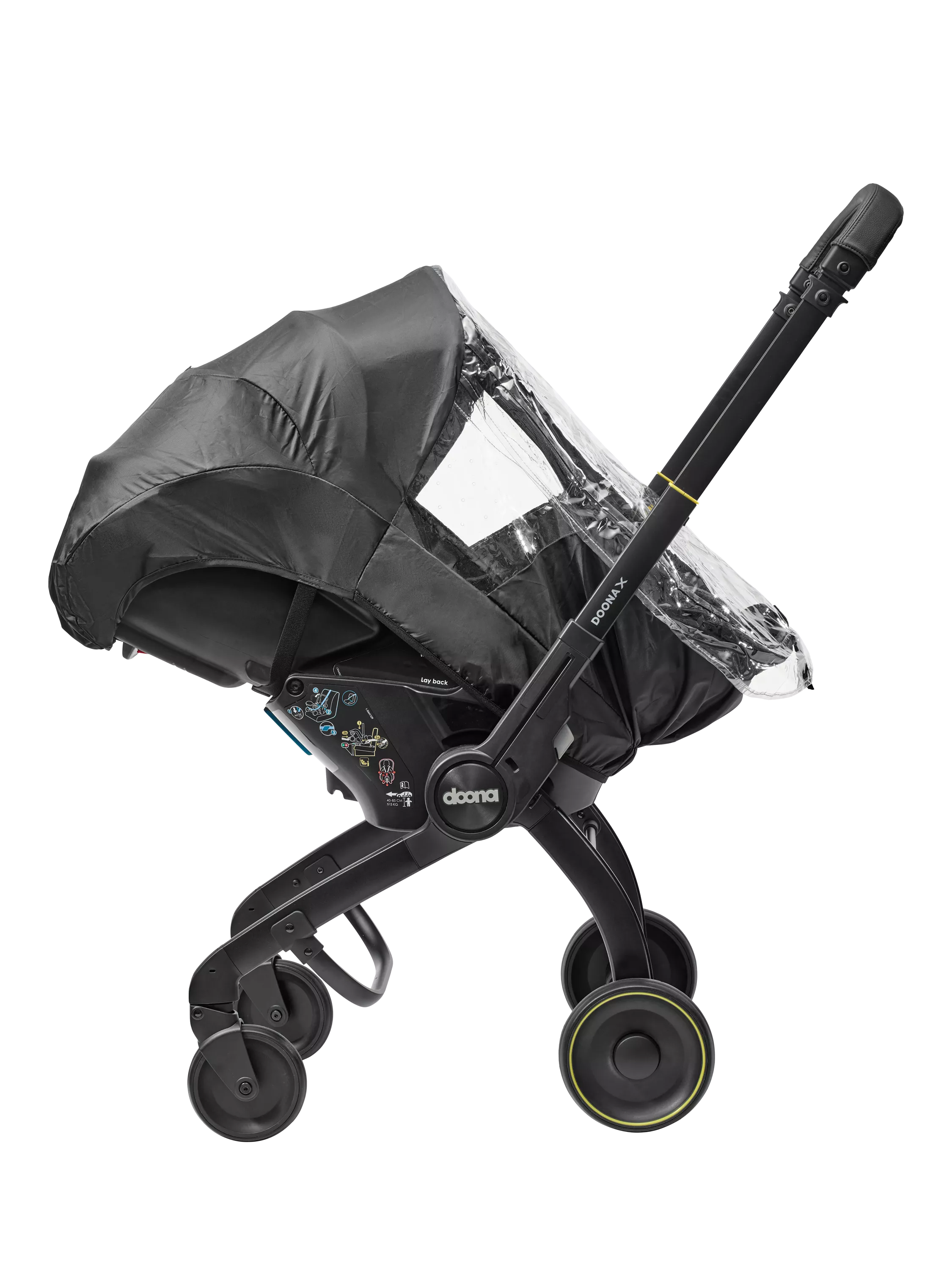 Keep your baby dry when out and about with your Doona X Stroller, sold separately. The Doona X Rain Cover is made of baby-safe materials with side ventilation holes to ensure that your baby is always comfortable, safe and dry.