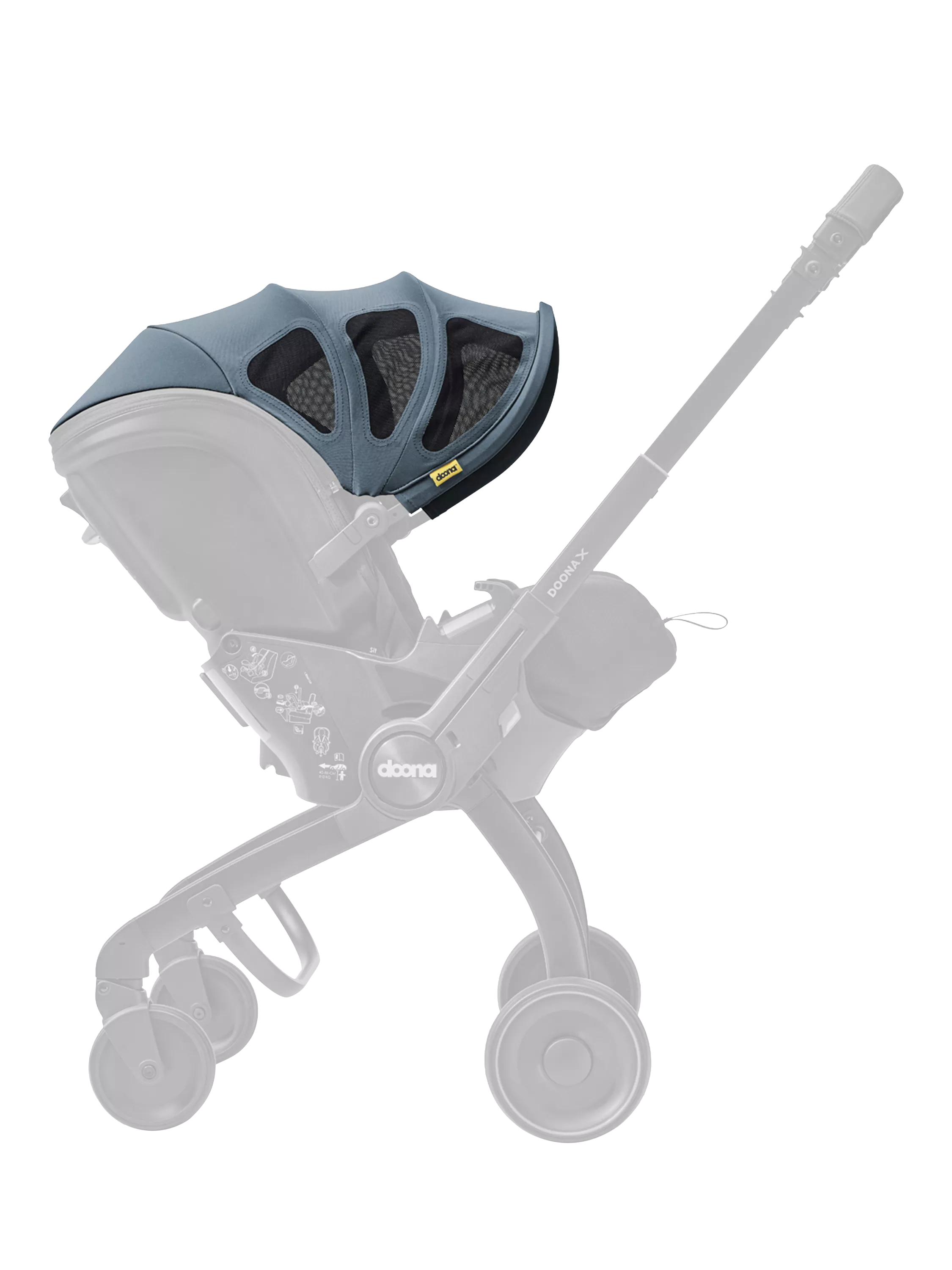 The Doona X Summer Canopy, crafted with breezy mesh windows, ensures optimal ventilation, keeping your little one cool in warm weather. This water-repellent canopy, with a UPF of 50+, easily installs and removes via a zipper connection, designed for seamless compatibility with the Doona X. Enjoy comfort, protection, and convenience on your strolls.