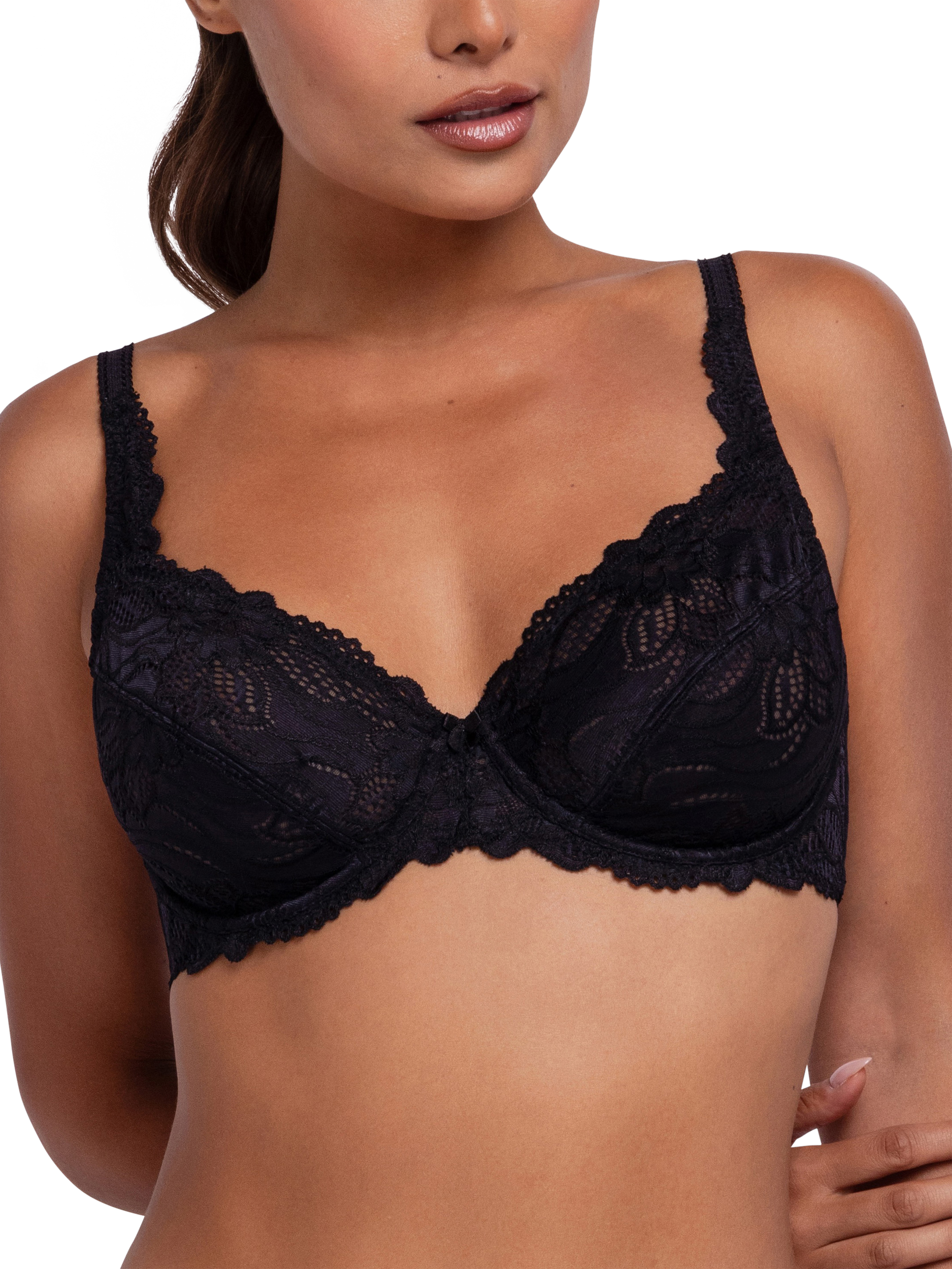 Crafted from super soft microfibre, the Angie Full Cup Underwired bra offers light, comfortable support with a non-padded full coverage cup. The bra features delicate lace trim at the cups and cradle, along with mesh back wings and adjustable straps for a customisable fit. It's adorned with a dainty satin bow at the centre front for a final, feminine detail.