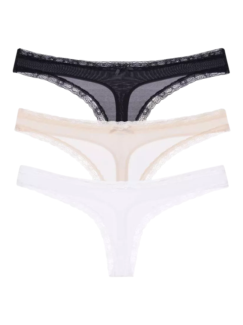 Made in soft and silky microfibre, these ultra-wearable thongs feel like a second skin. With lace edging and bow detail.