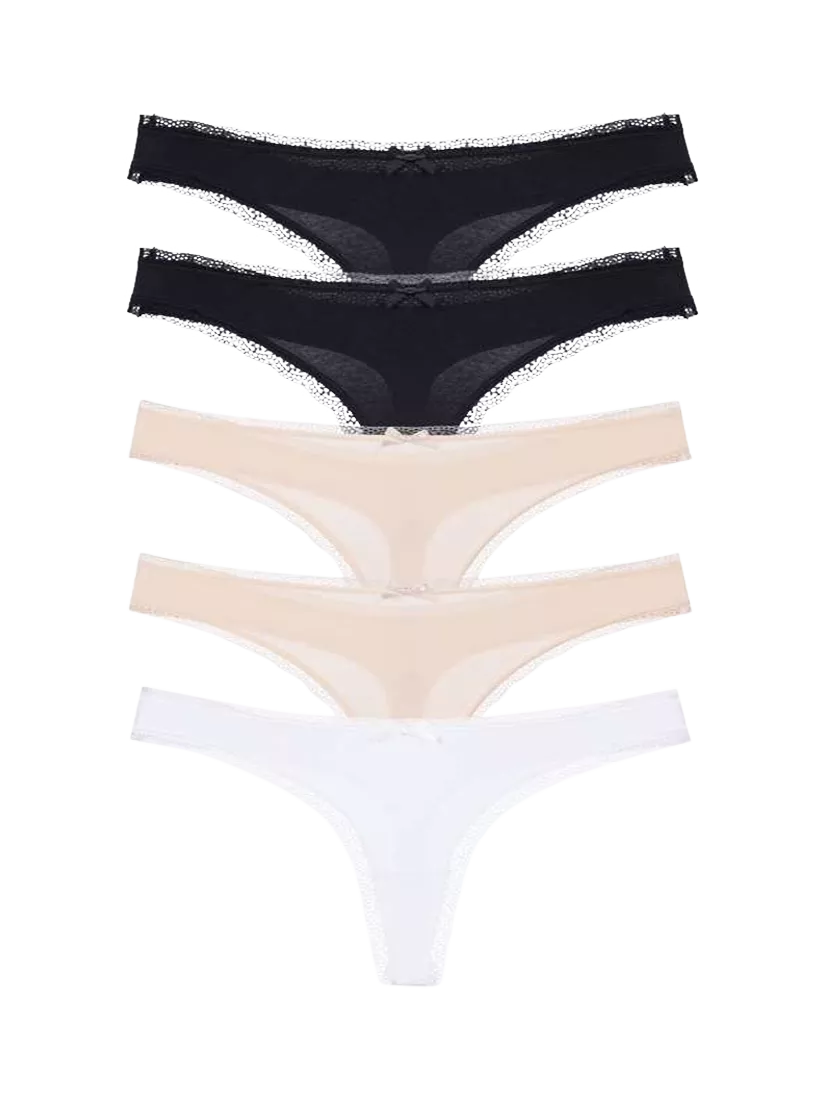 Made in soft and silky microfibre fabric, these ultra-wearable thongs feel like a second skin. With lace edging and bow detail.