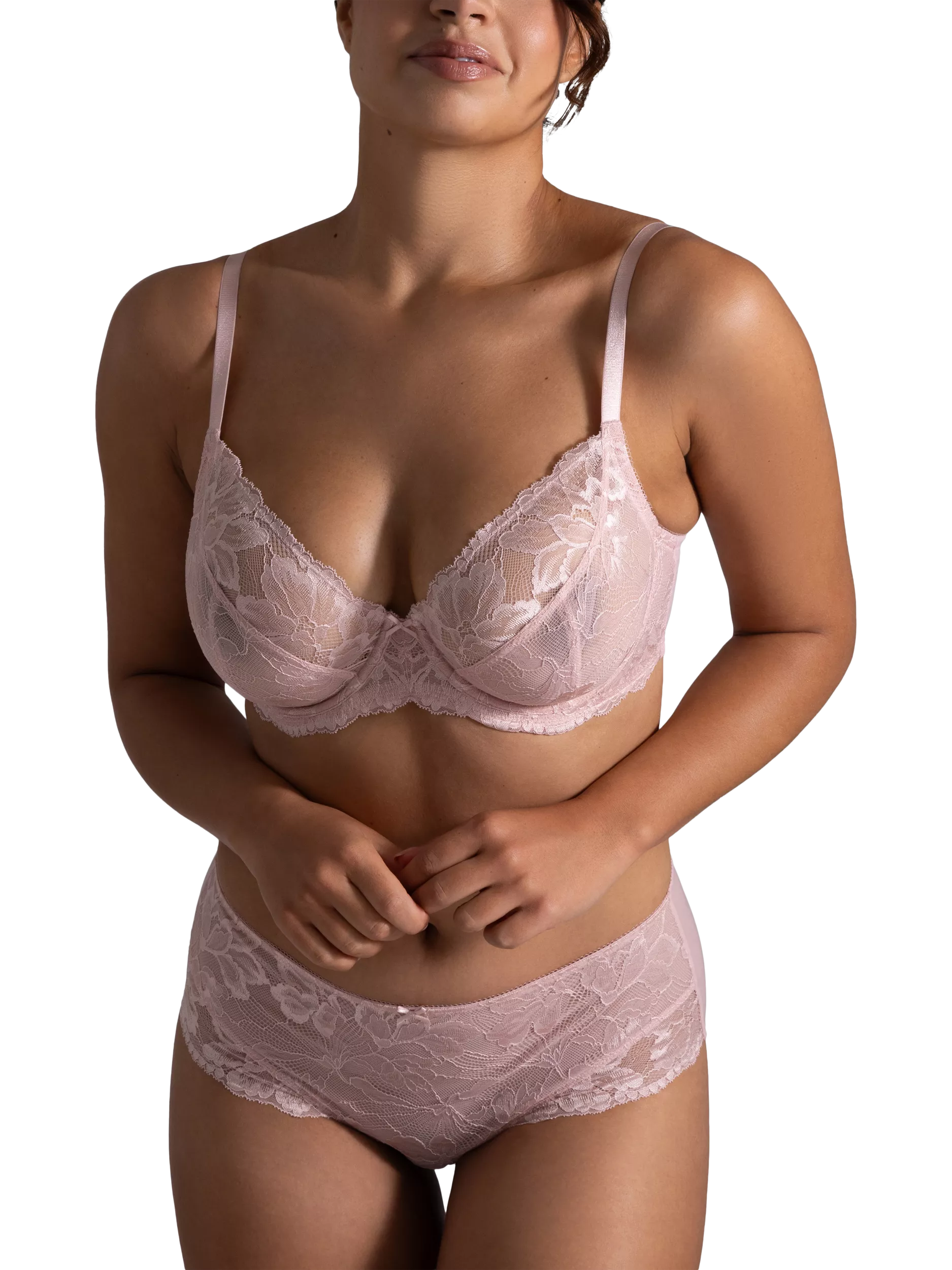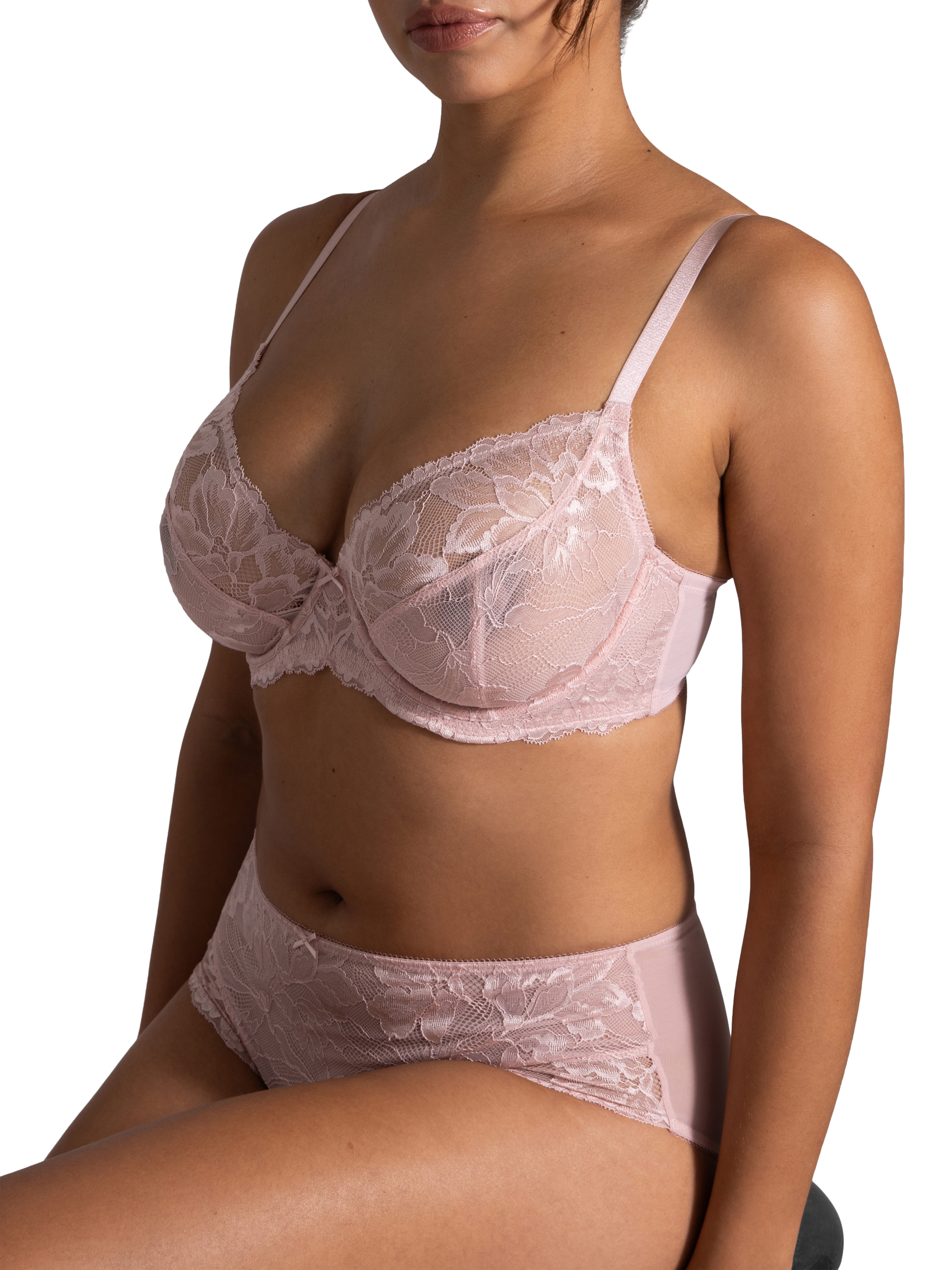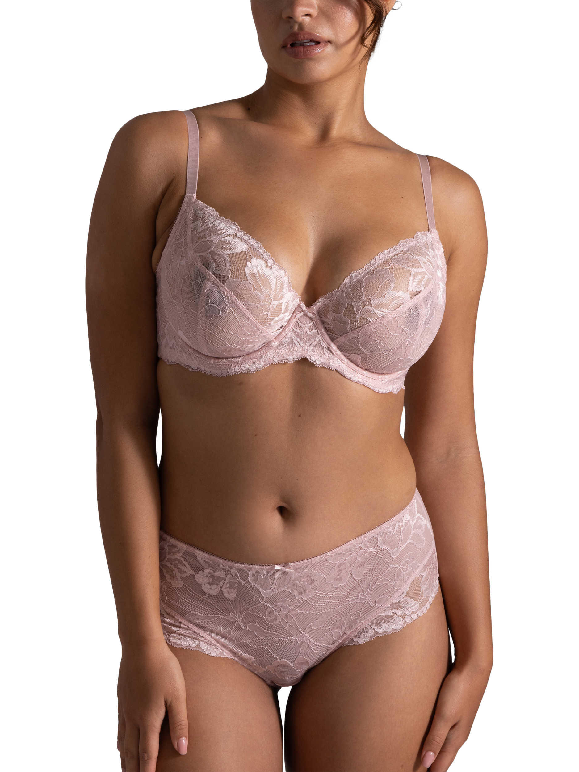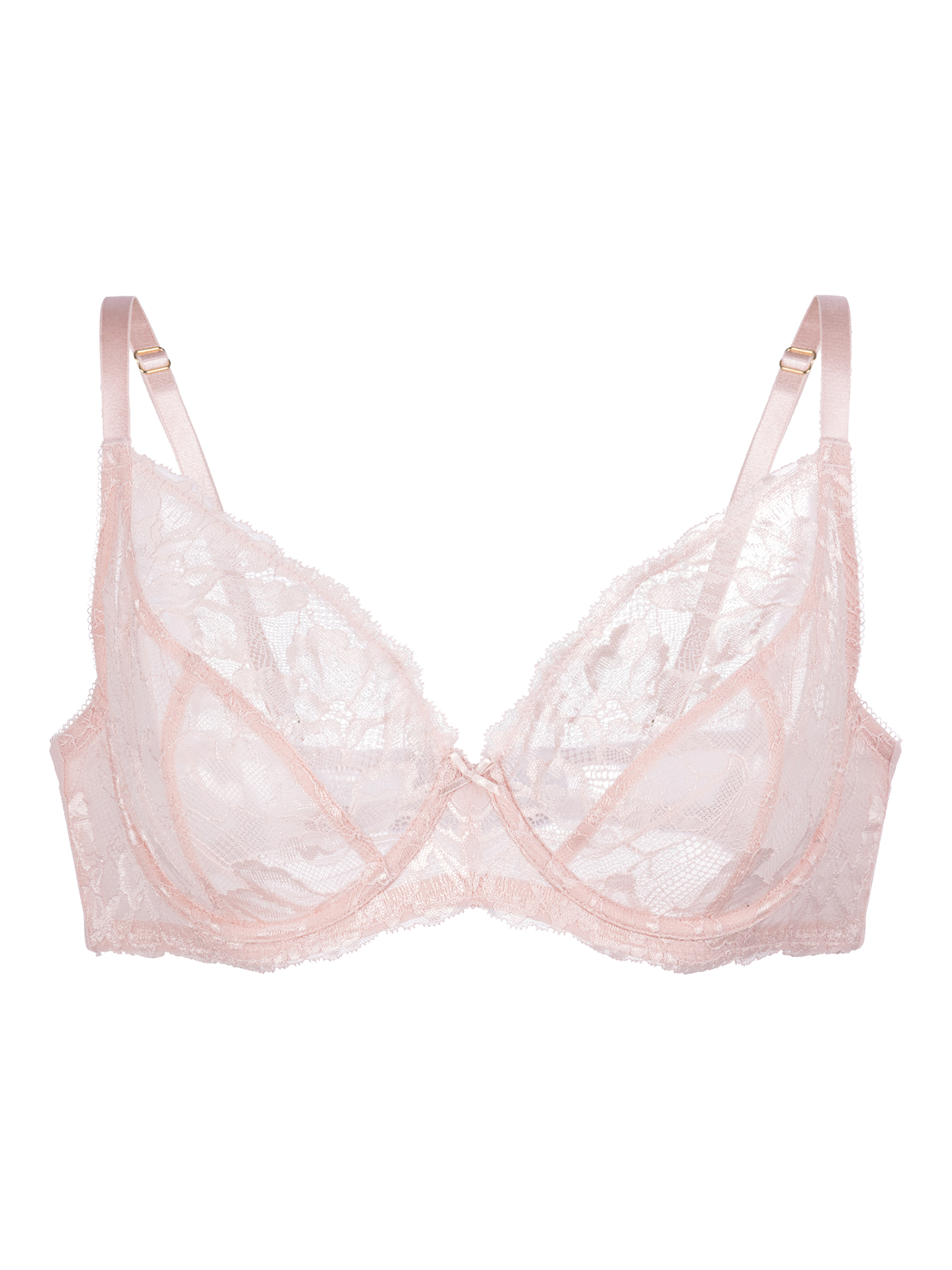 Zero padding, full coverage. A scooping, full-cup bra with a plunge silhouette for a natural shape, with no-dig underwiring for support. This pretty style features a delicate lace overlay for a romantic, flirty look.