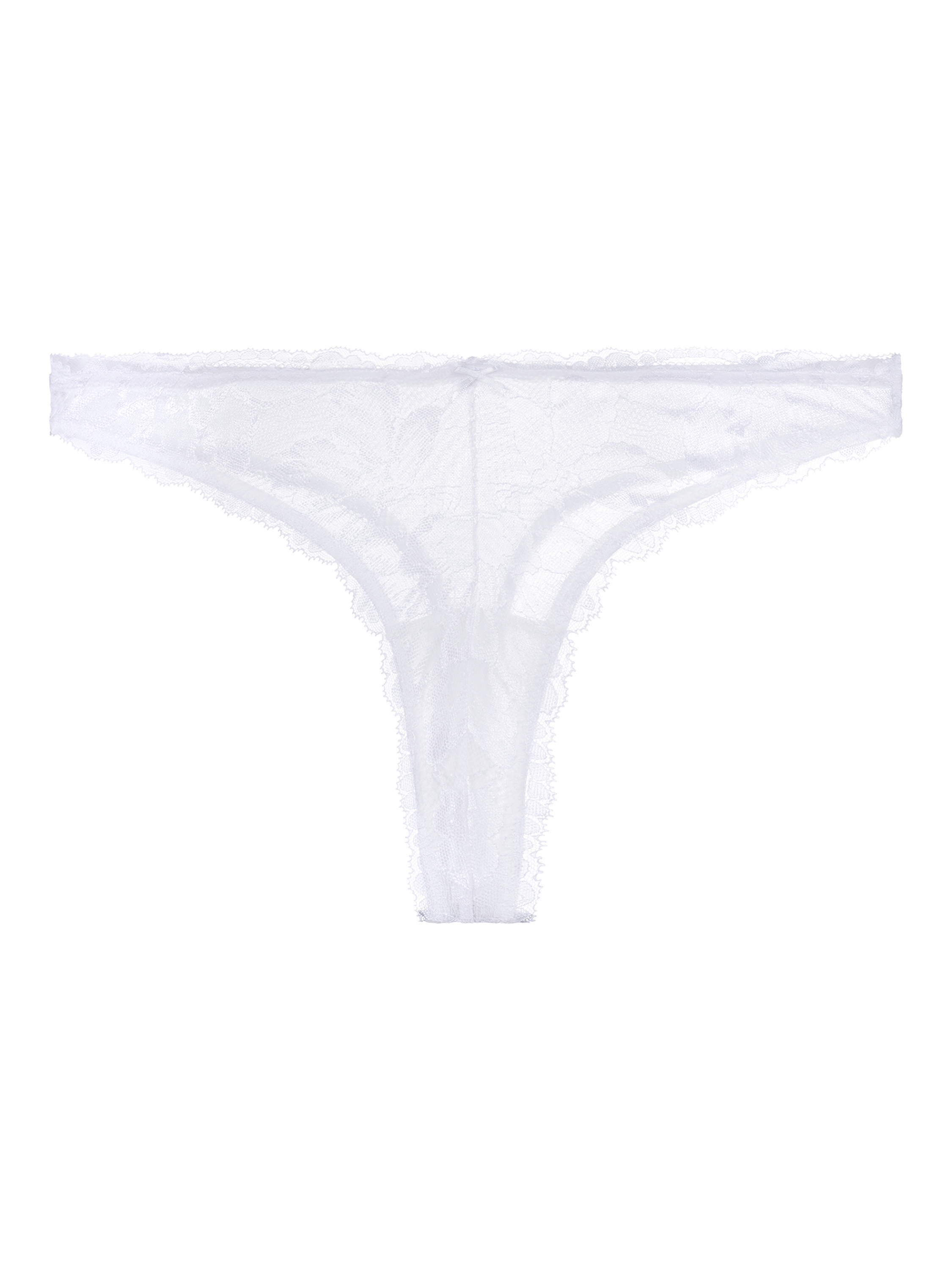 A thong in delicate, feathery lace. With a flattering high-leg silhouette and dipped front hemline.