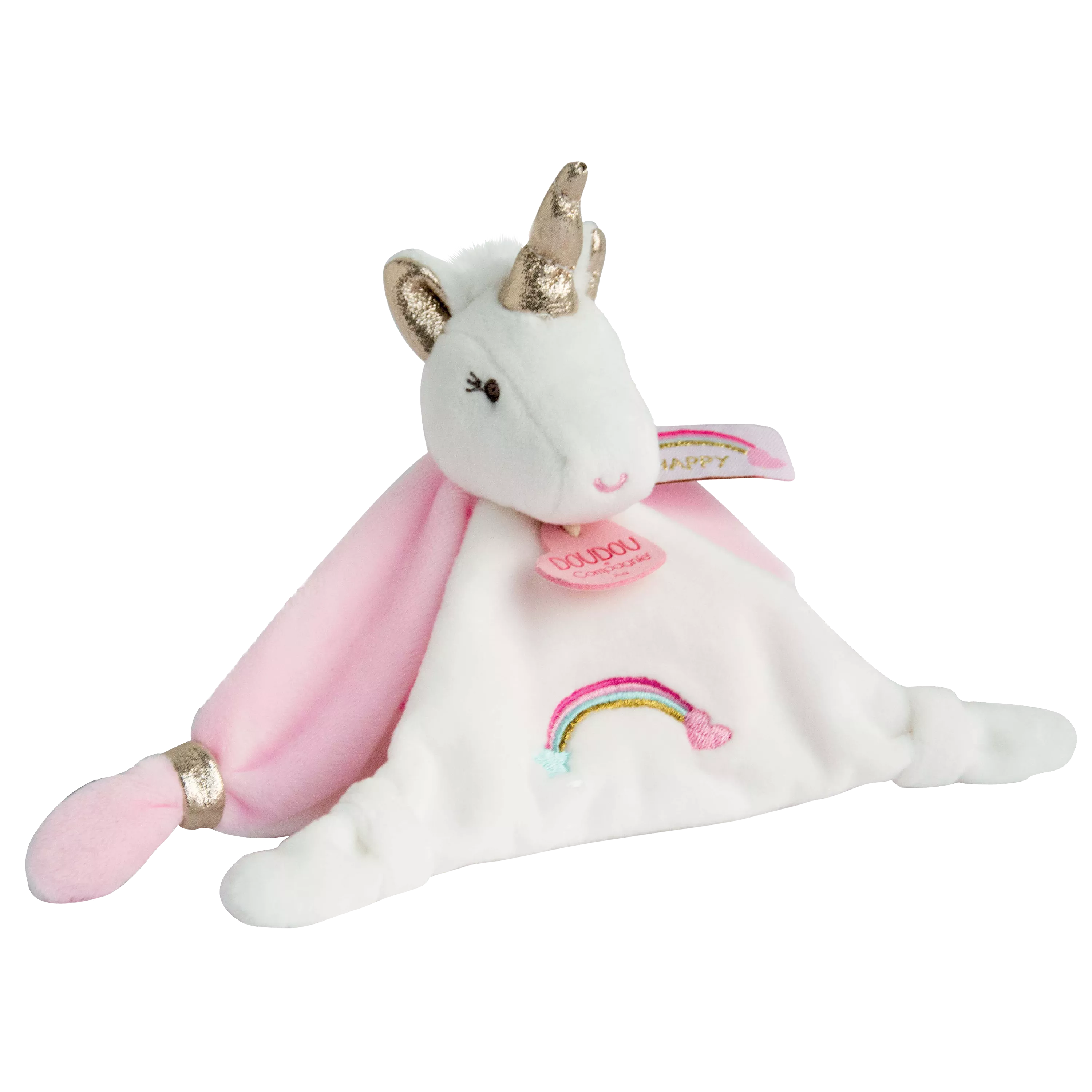 The super soft Unicorn Doudou plush toy from Doudou et Compagnie will comfort baby everywhere. With adorable gold glitter and rainbow embroidery, she comes in a gorgeous matching gift box, making him an ideal gift for growing babies.
