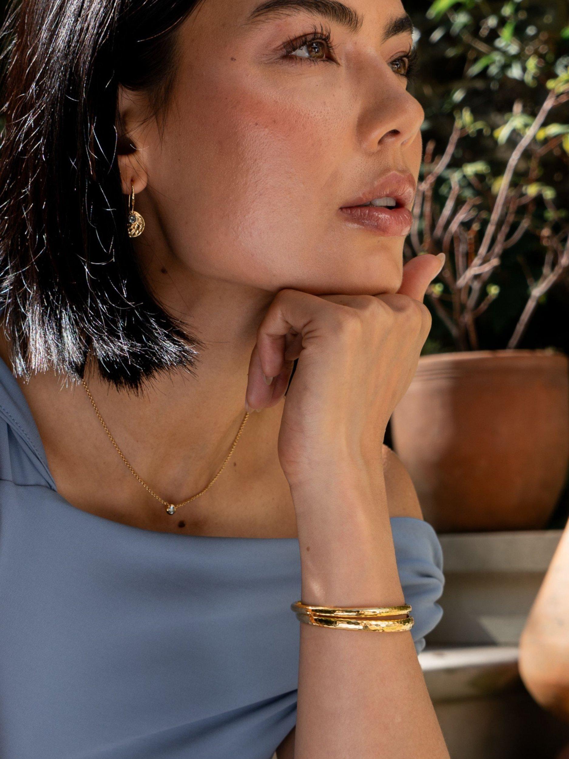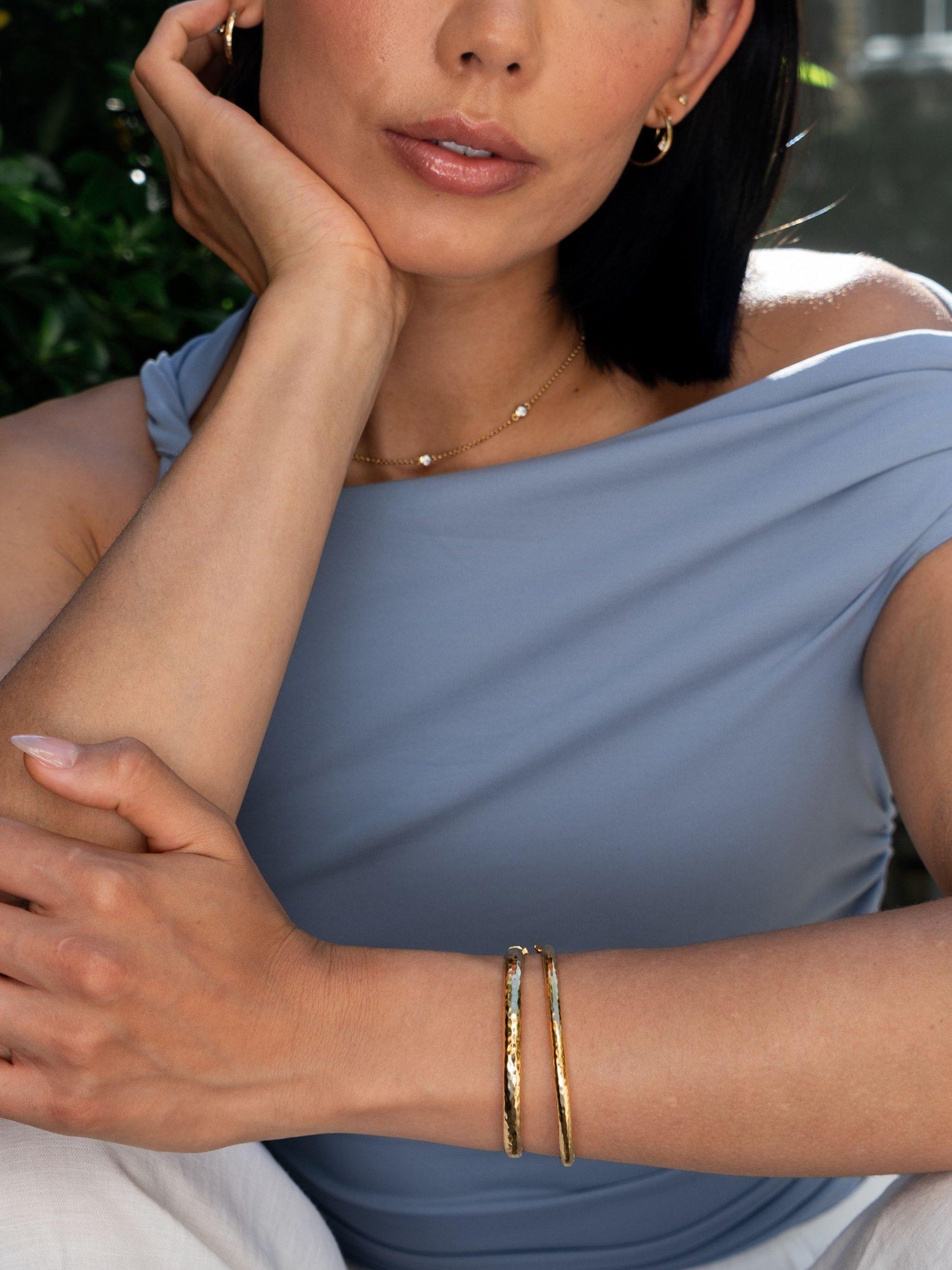 Made from 18ct yellow gold vermeil on sterling silver, this 6mm hollow hinged bangle from Dower & Hall features the brand's signature hammered texture. Designed with a hinge and easy-to-use clasp that makes on and offs effortless.