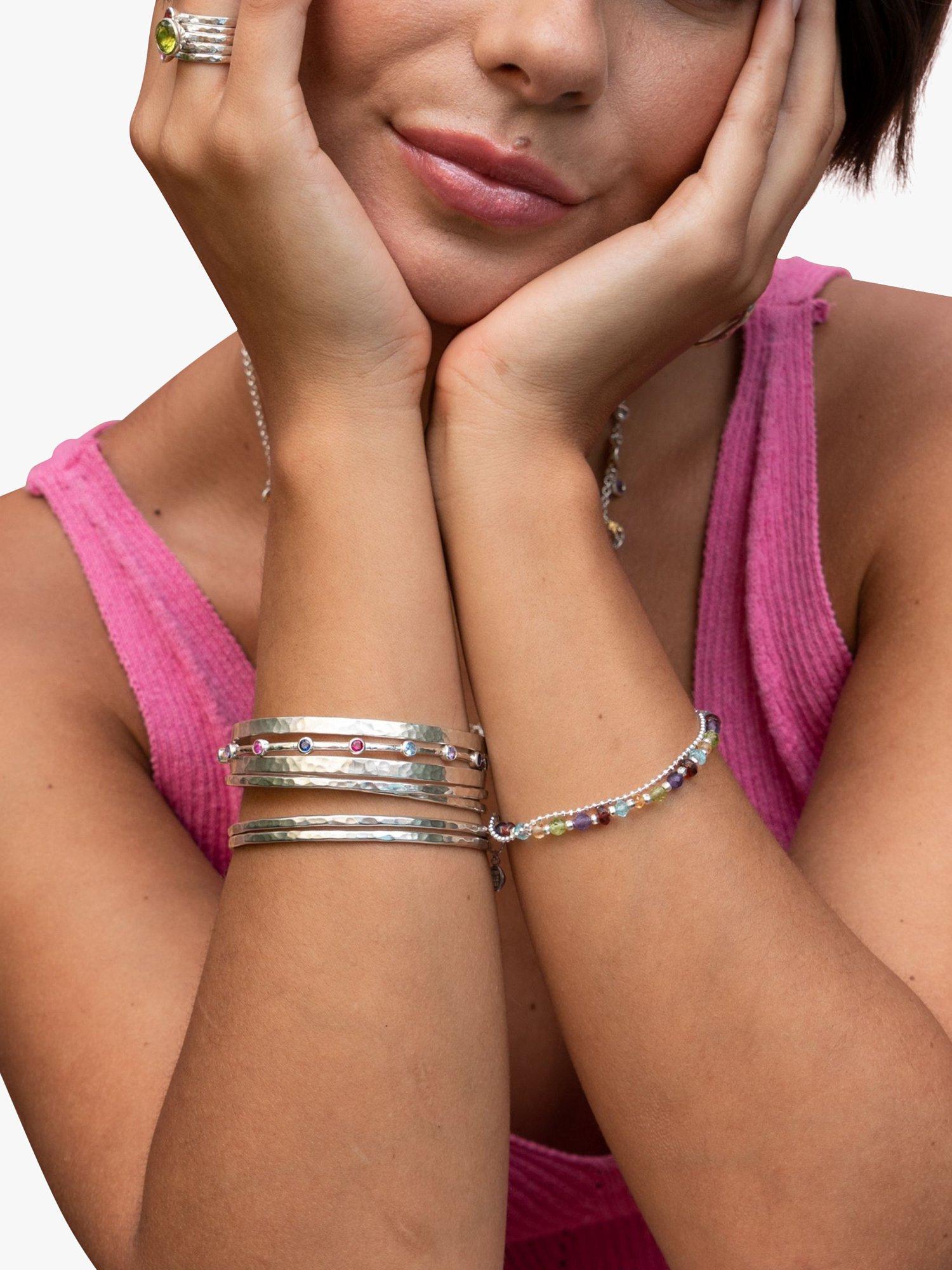 This handmade sterling silver 3mm bangle features the Dower & Hall signature hammered finish. Wear alone or stack up with multiple bracelets and bangles.
