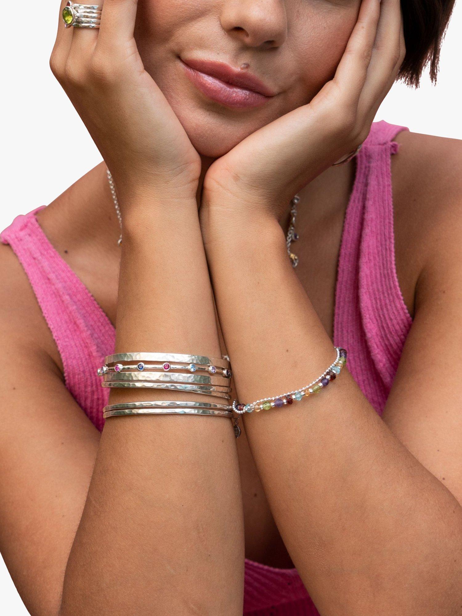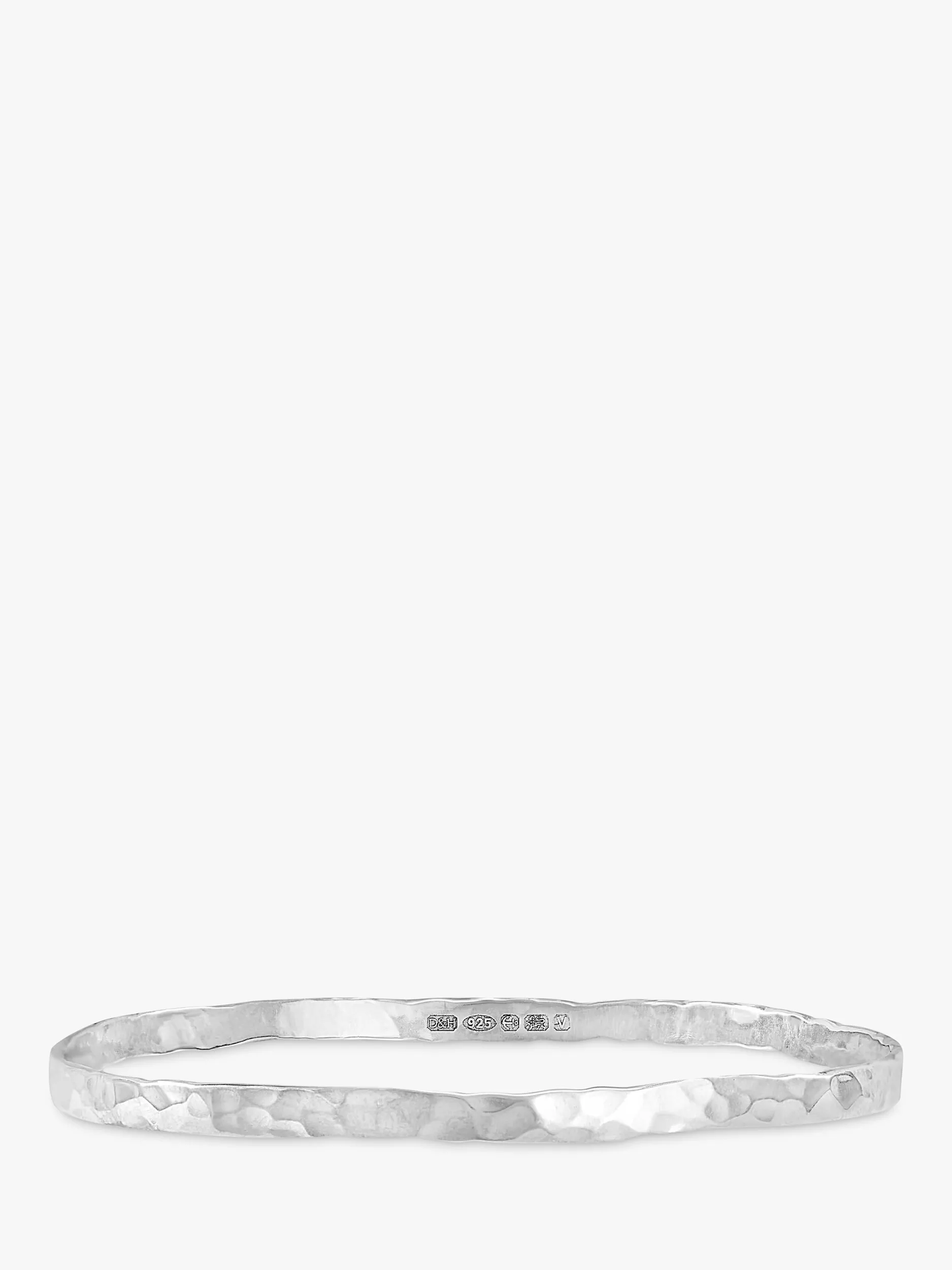 This 4mm bangle from Dower & Hall has an organic irregular shape complete with the brand's signature hammered finish. Wear alone or stack up with multiple bracelets and bangles for a stylish look.