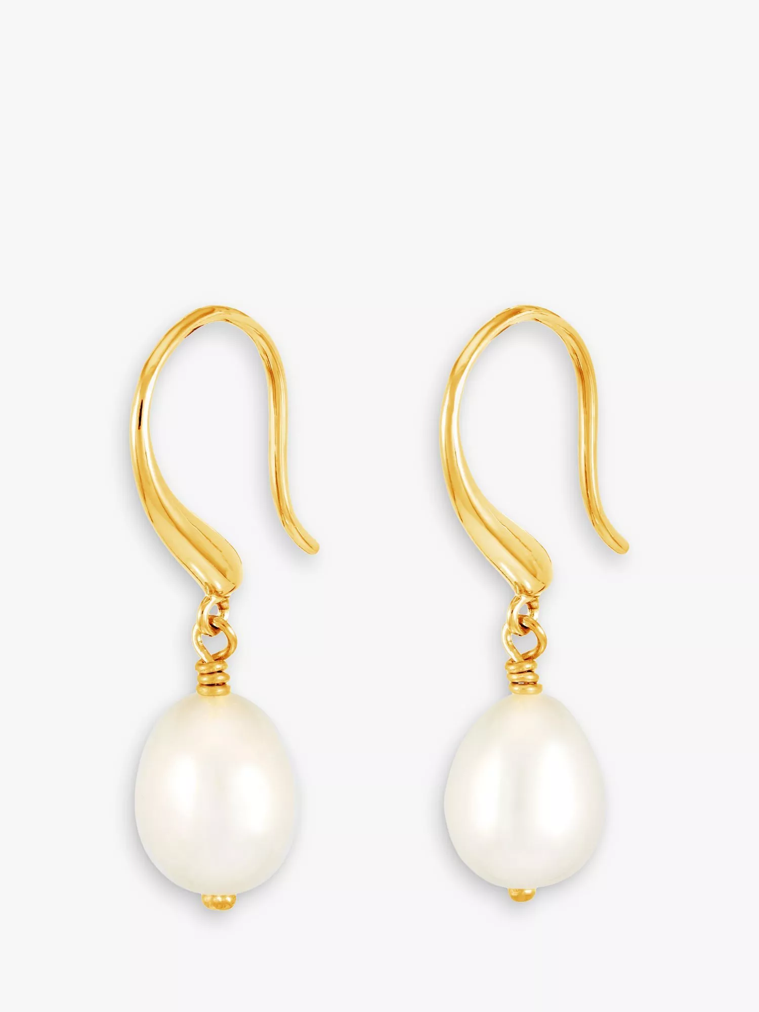 Made in their London studio, this pair of irregular, natural baroque pearls come suspended on the brand's signature hammered ear wires. For pierced ears only.