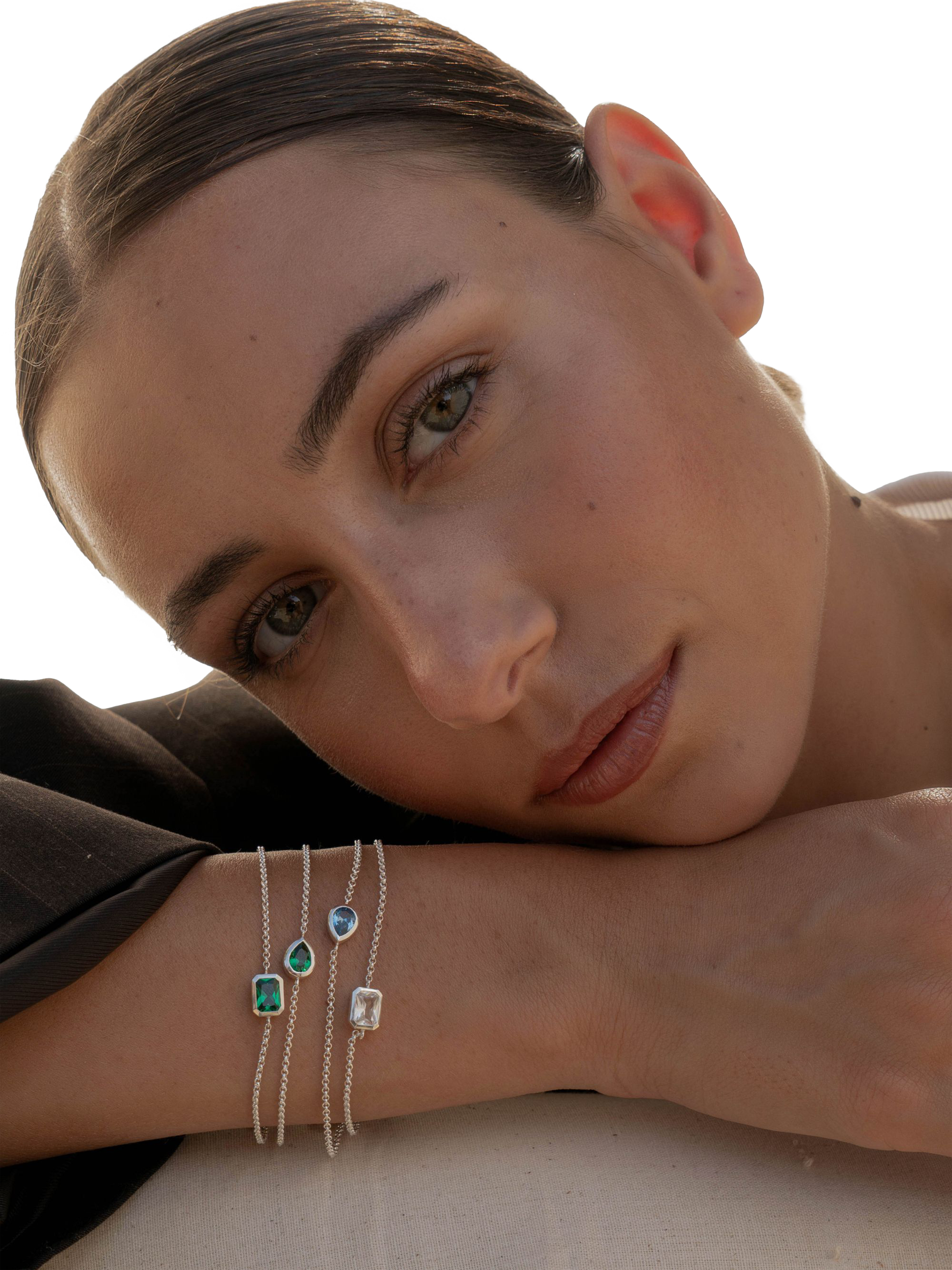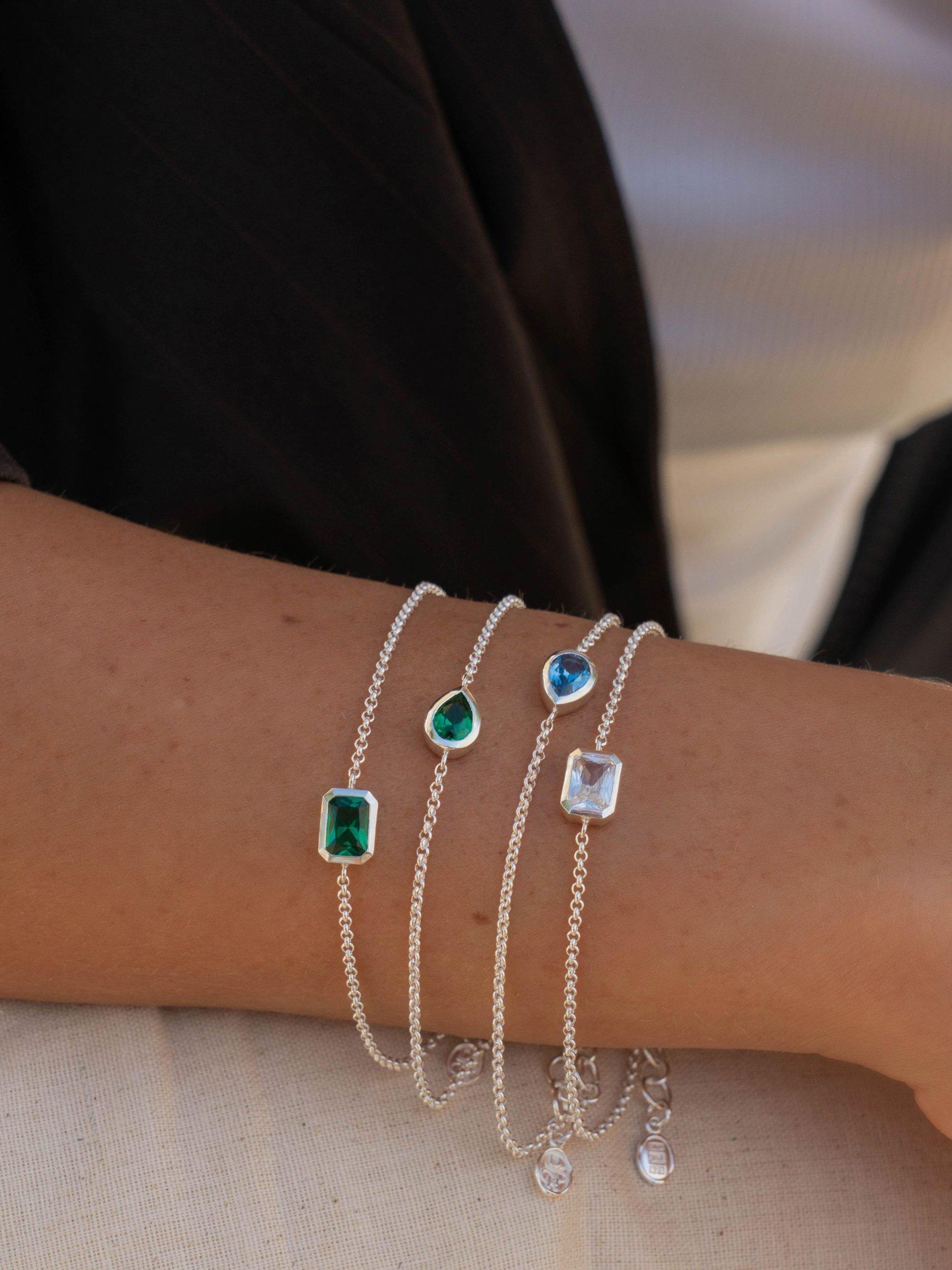 Crafted from sterling silver, this handmade chain bracelet features a striking pear-cut gem that will captivate you with its eye-catching colour. Wear as a standalone piece or stack with other bracelets for a layered look. The bracelet is adjustable between 6.5 - 7.5 inches, making it perfect for everyone. Gemstone size - 7 x 5mm.