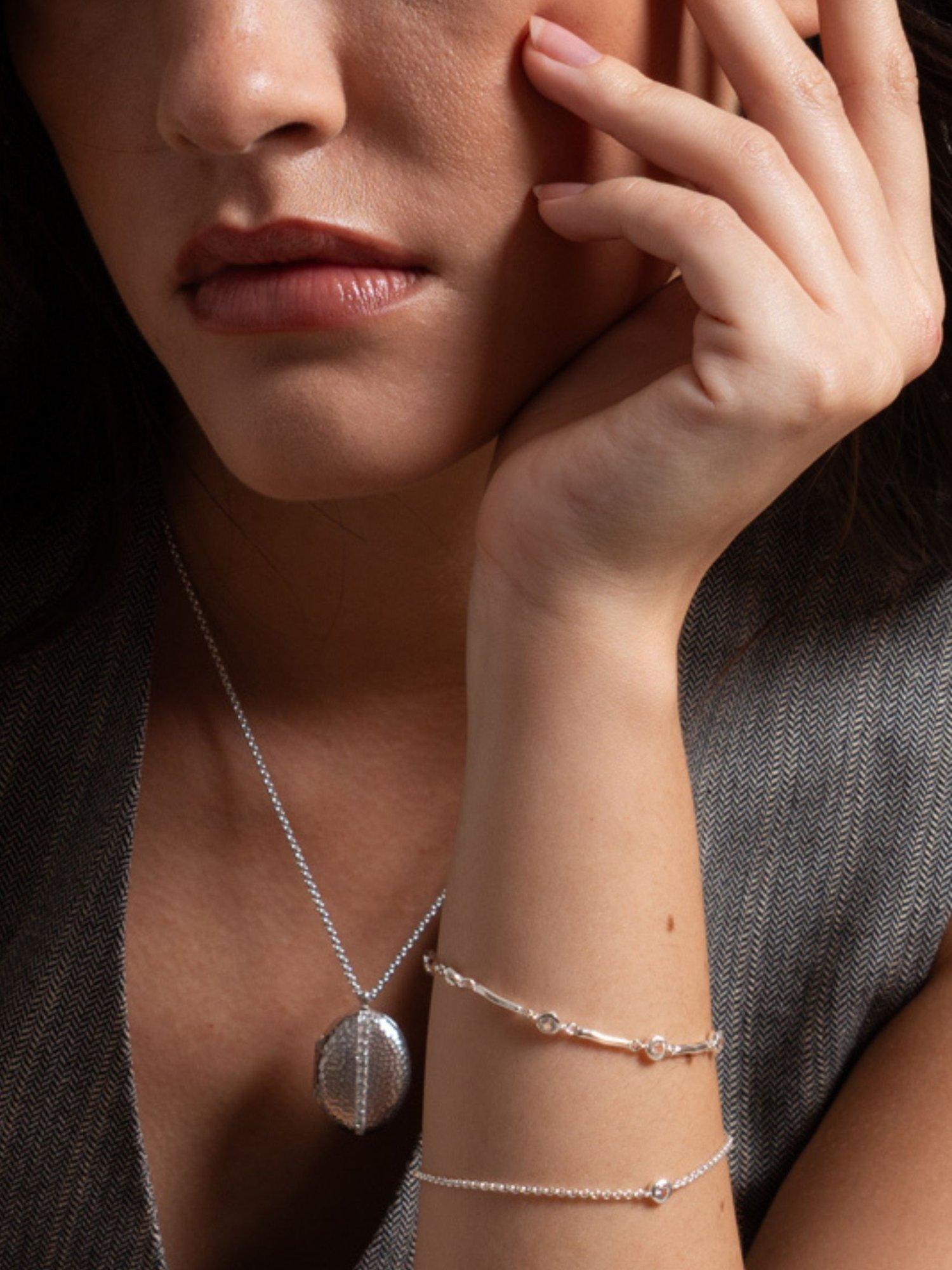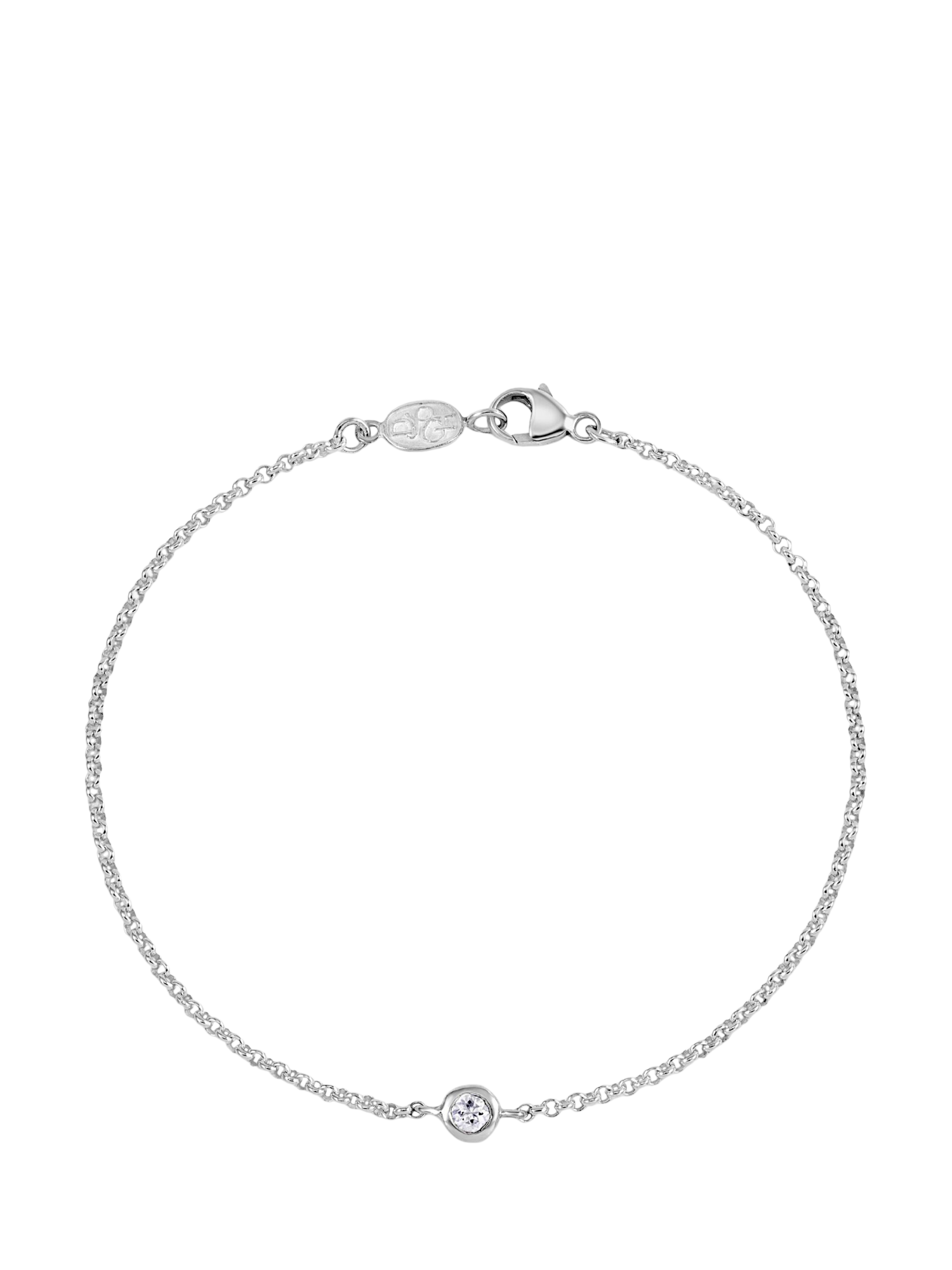 Perfect for day or night, this sterling silver Dewdrop chain bracelet features a single white sapphire encased in a dainty nugget setting. Fasten securely with the brand's signature quatrefoil lobster catch and wear alone or stack with other bracelets for a layered look.