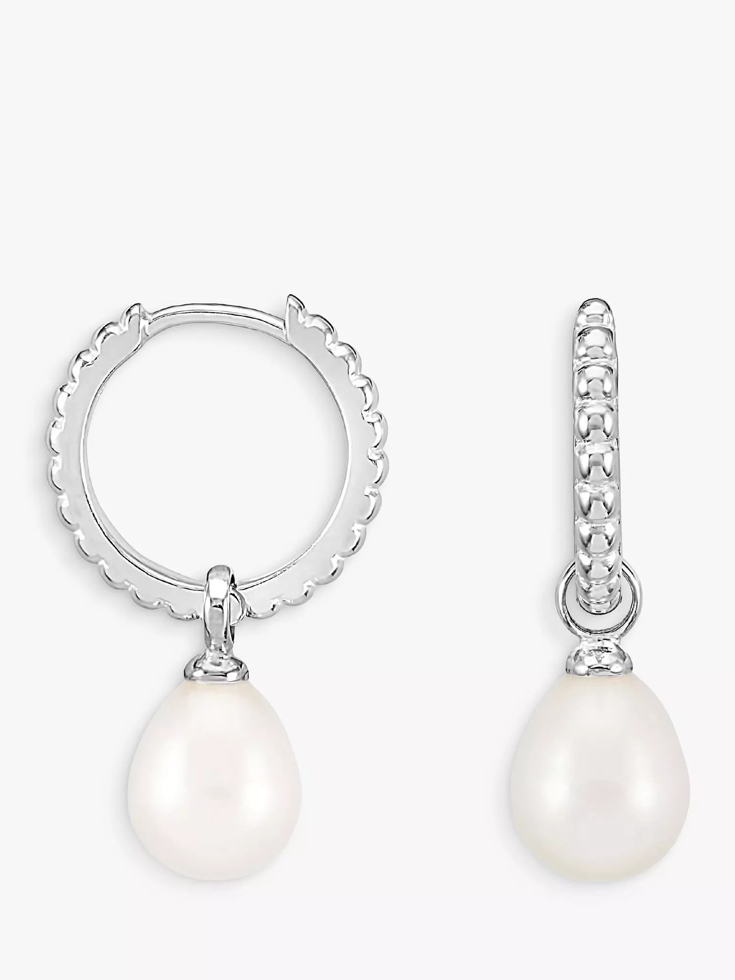 Made from a radiant 18ct yellow gold vermeil finish, the earrings feature a lustrous oval white freshwater pearl charm drop.