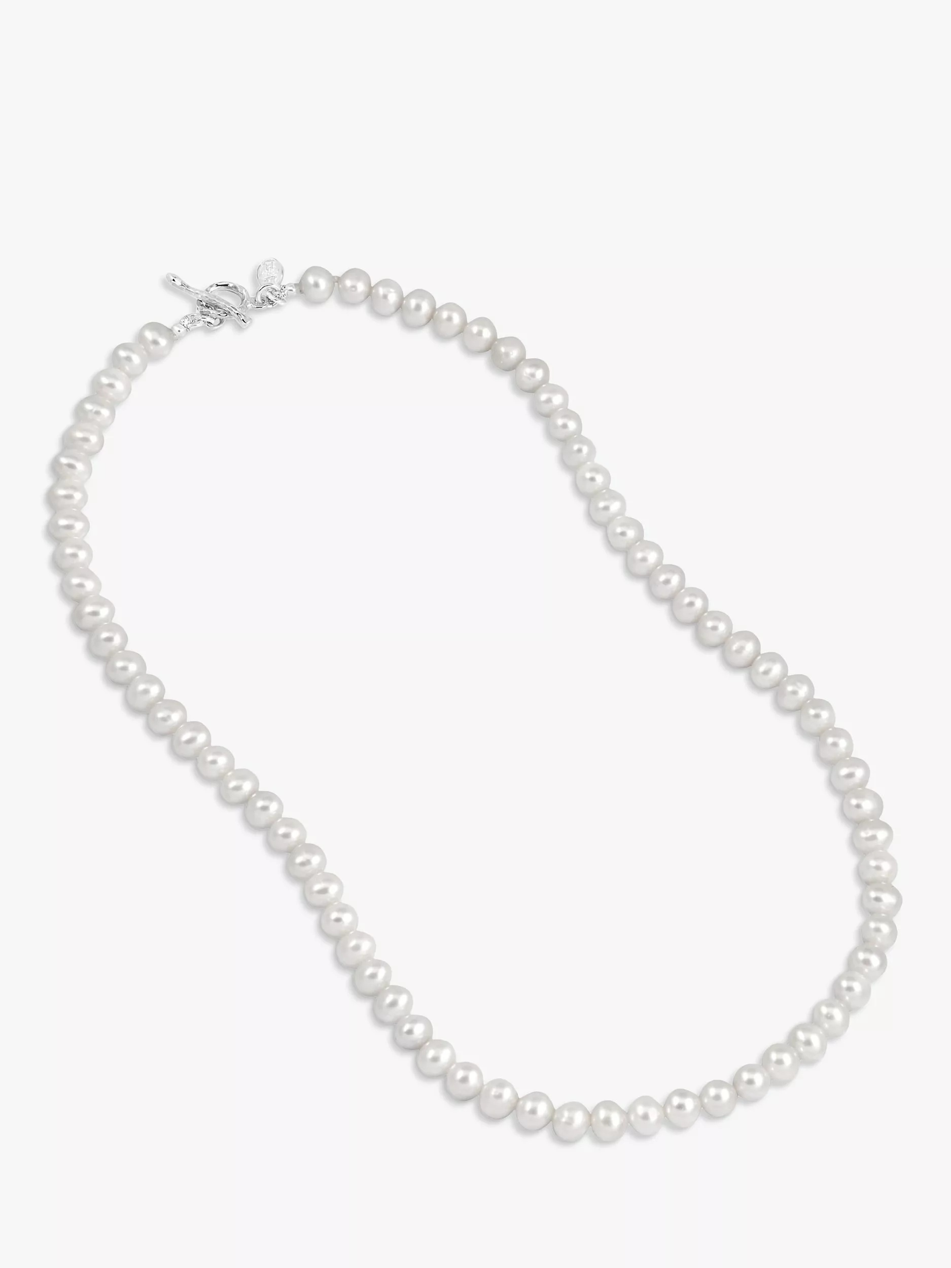 Nothing beats a good pearl necklace when it comes to elegance and sophistication. A truly classical style, this pearl necklace for Dower & Hall will make a great finishing touch to your occasion wear. Made with a strand of lustrous baroque pearls, it is finished with the brand's signature sterling silver hammered loop and t-bar clasp.