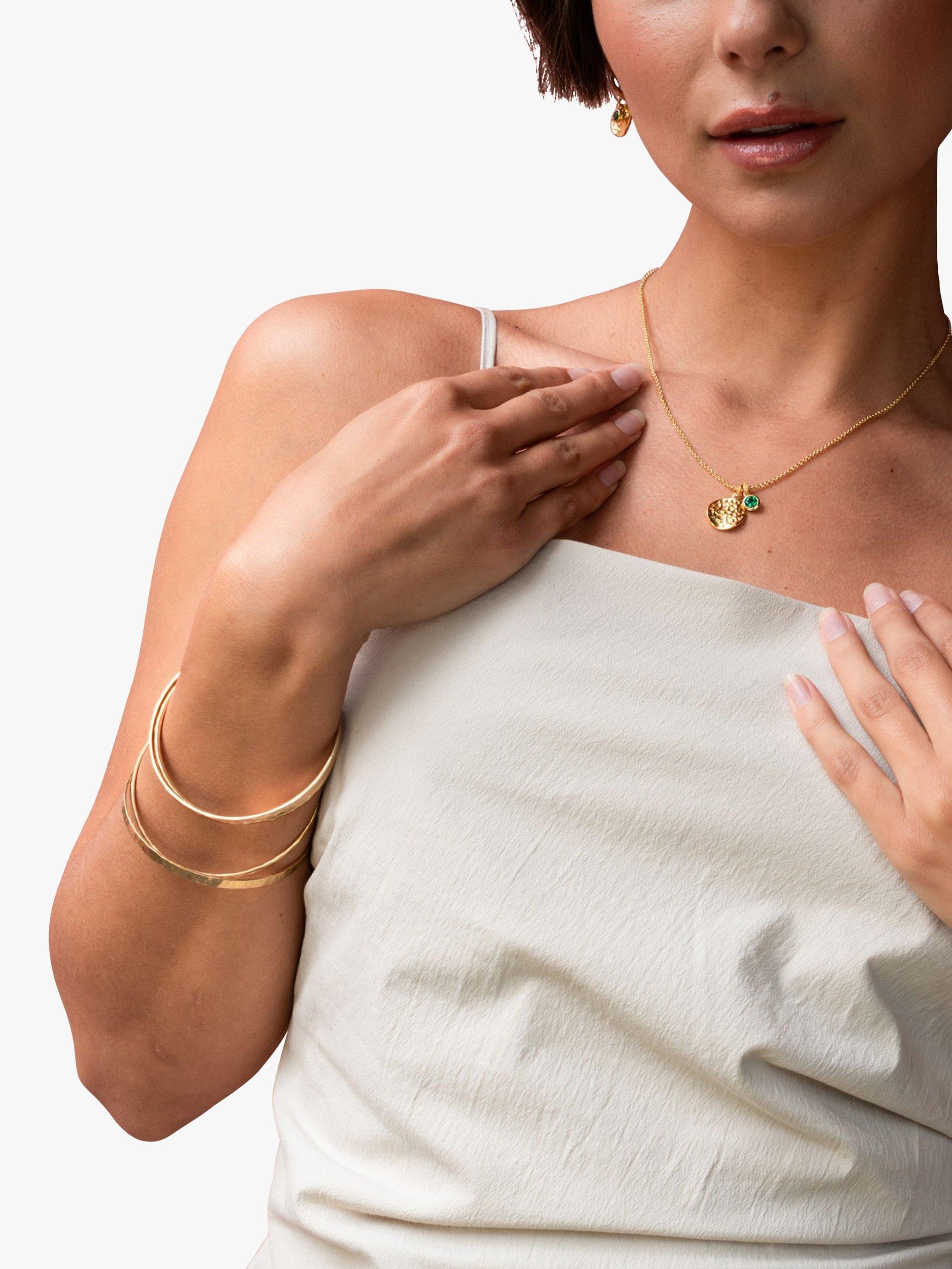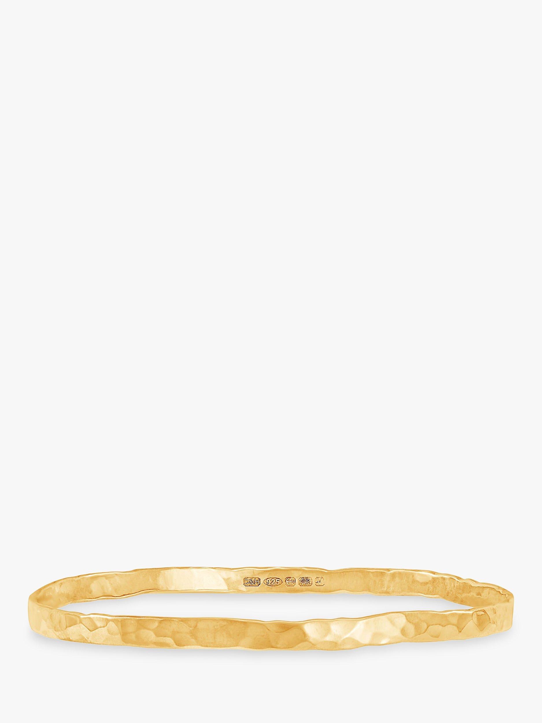 This Dower & Hall bangle is made of gold plated vermeil and features a hammered finish that gives an organic feel to the wrist. The hammered finish creates fine touches of light and shade.