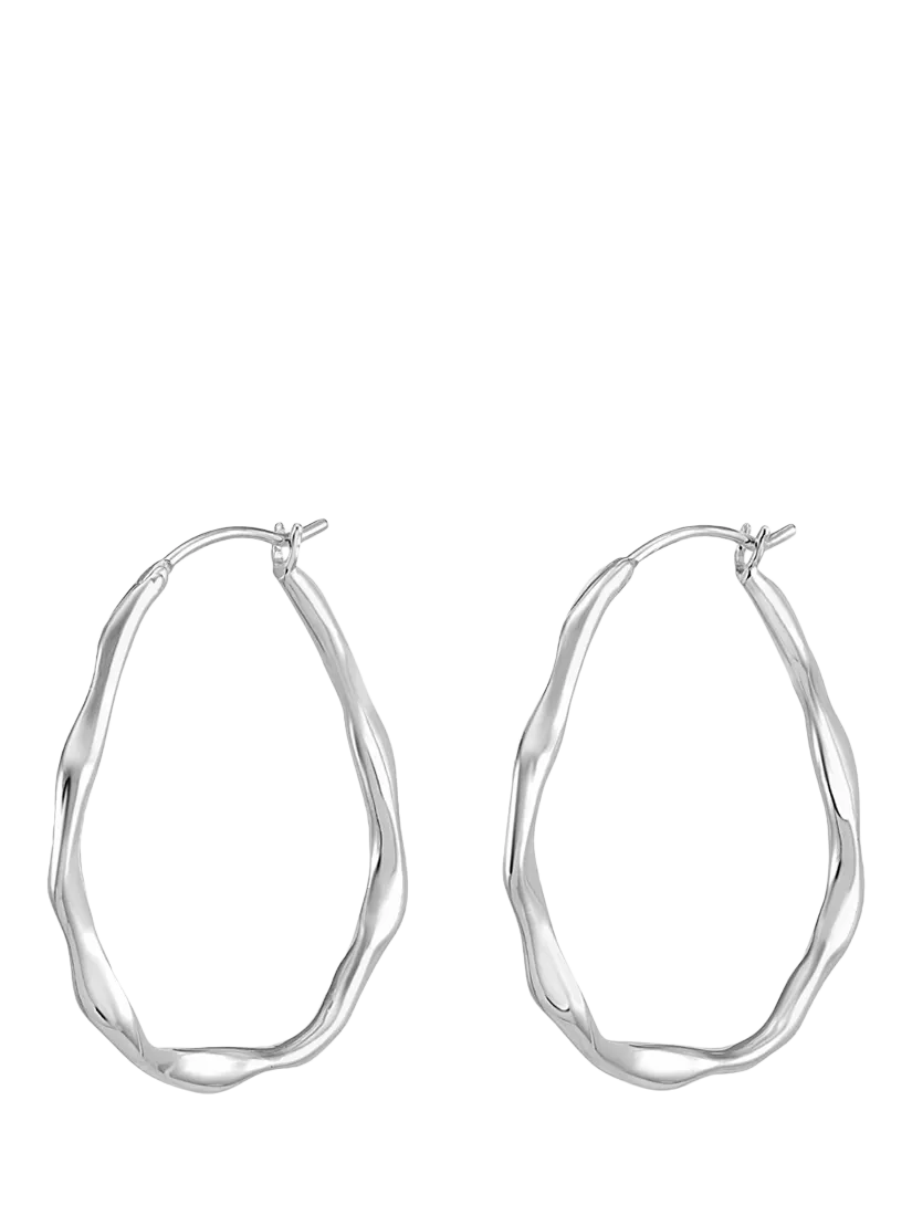 Made from sterling silver, this pair of hinged oval waterfall hoop earrings have a ripple design that looks like the movement of water. The organic ripple pattern is subtle and feminine, making the earrings wonderfully wearable every day.