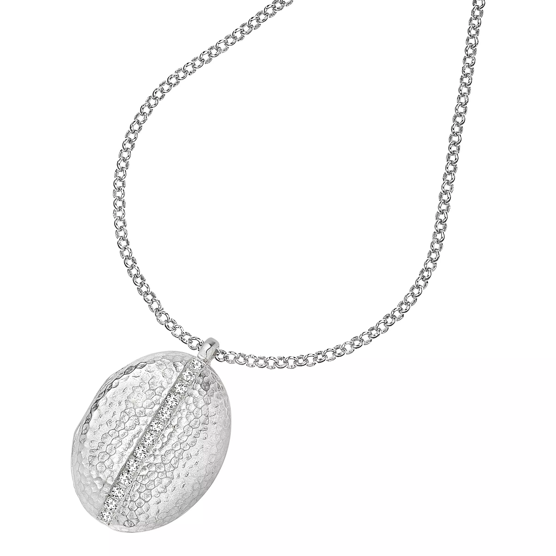 Featuring signature hammered finish, the locket is suspended on belcher chain and finished with a quatrefoil lobster catch. Personalise your locket with a sentimental photograph or precious keepsake.