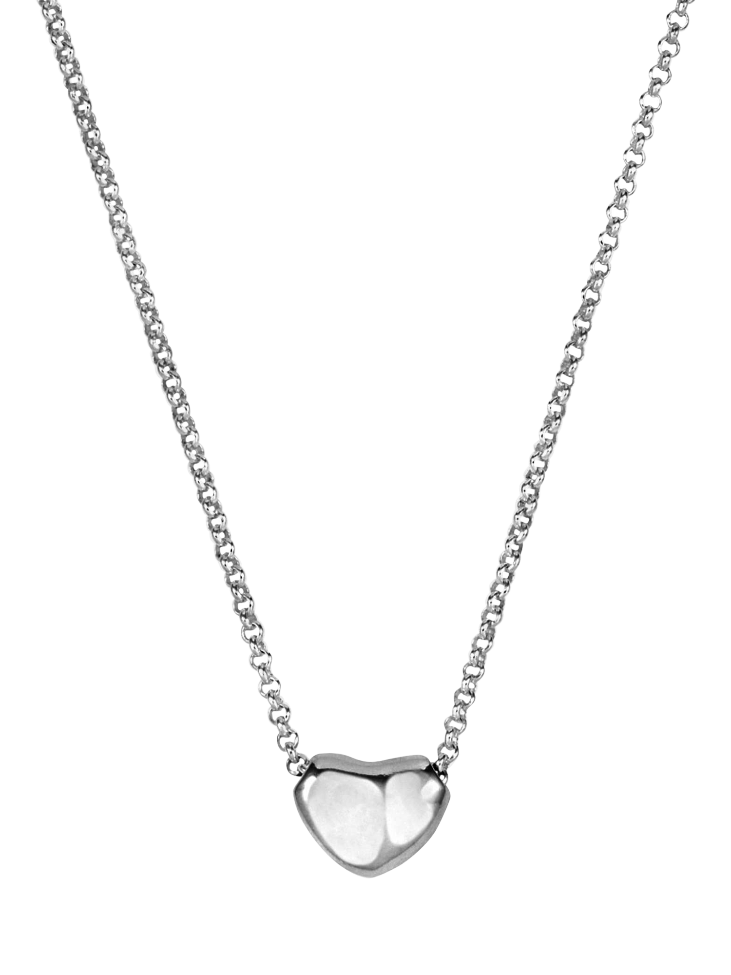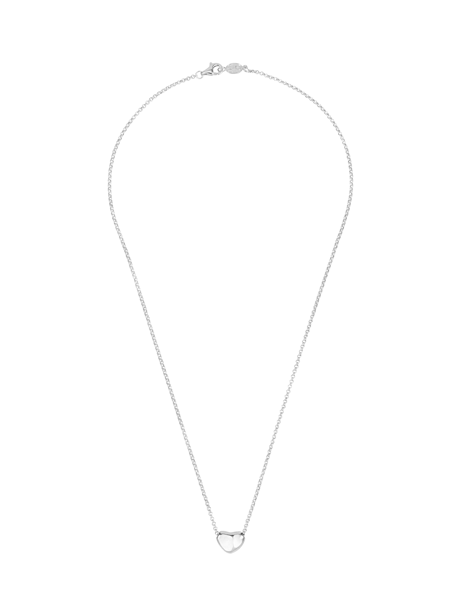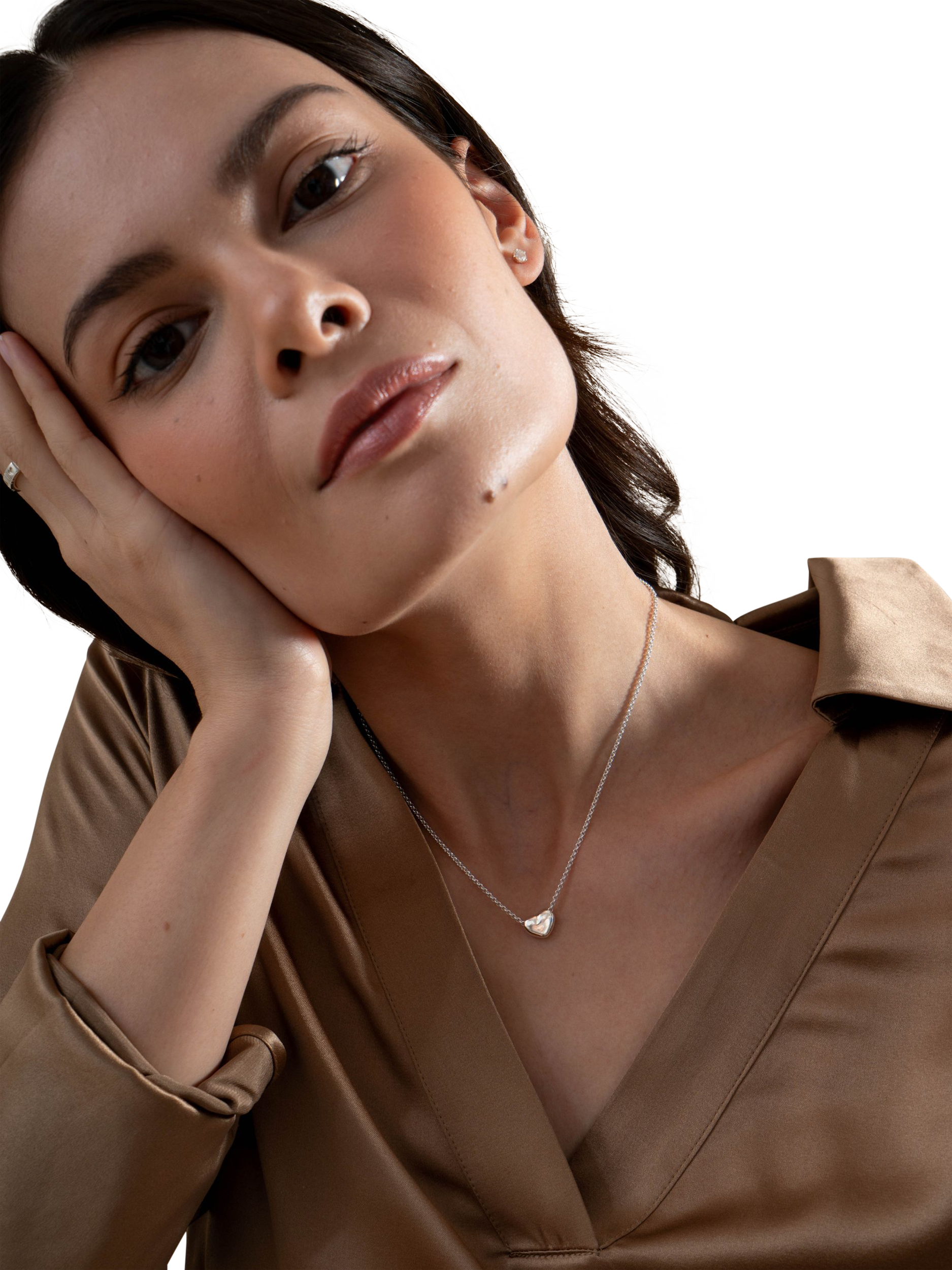 The heart is suspended on a fine chain, finished with a signature tag and lobster clasp.
