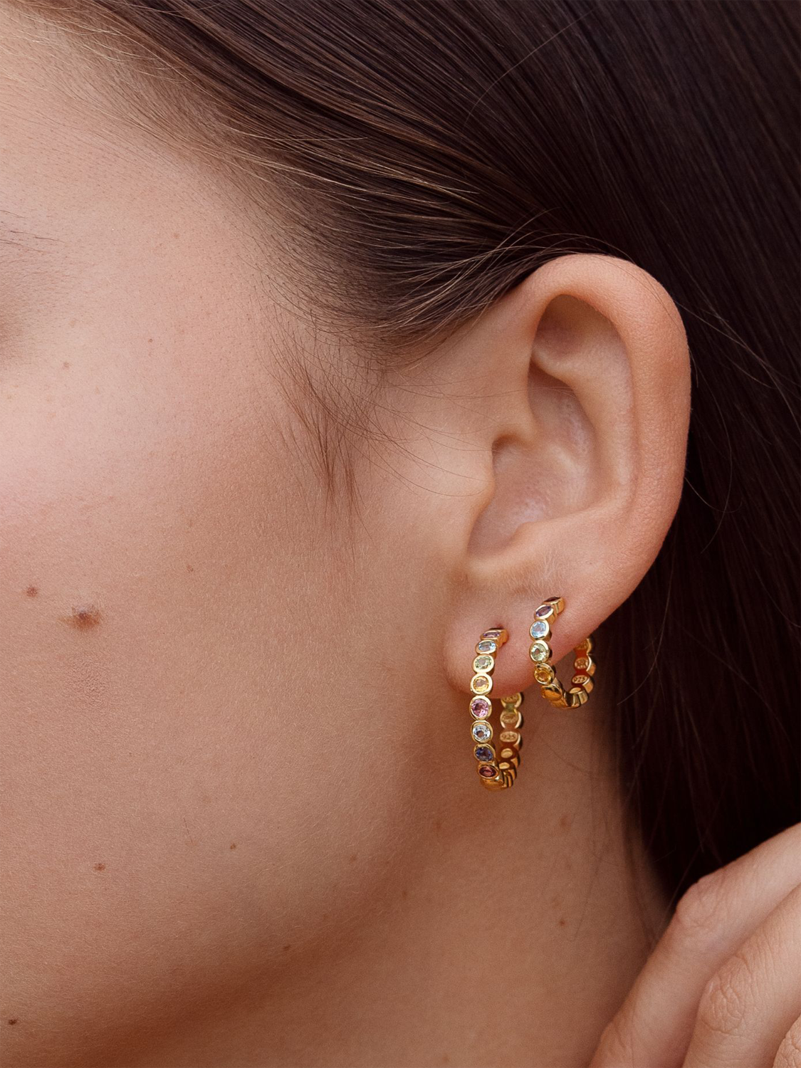 Dower & HallRainbow Gem Huggie Hoop Earrings, Gold/Multi
