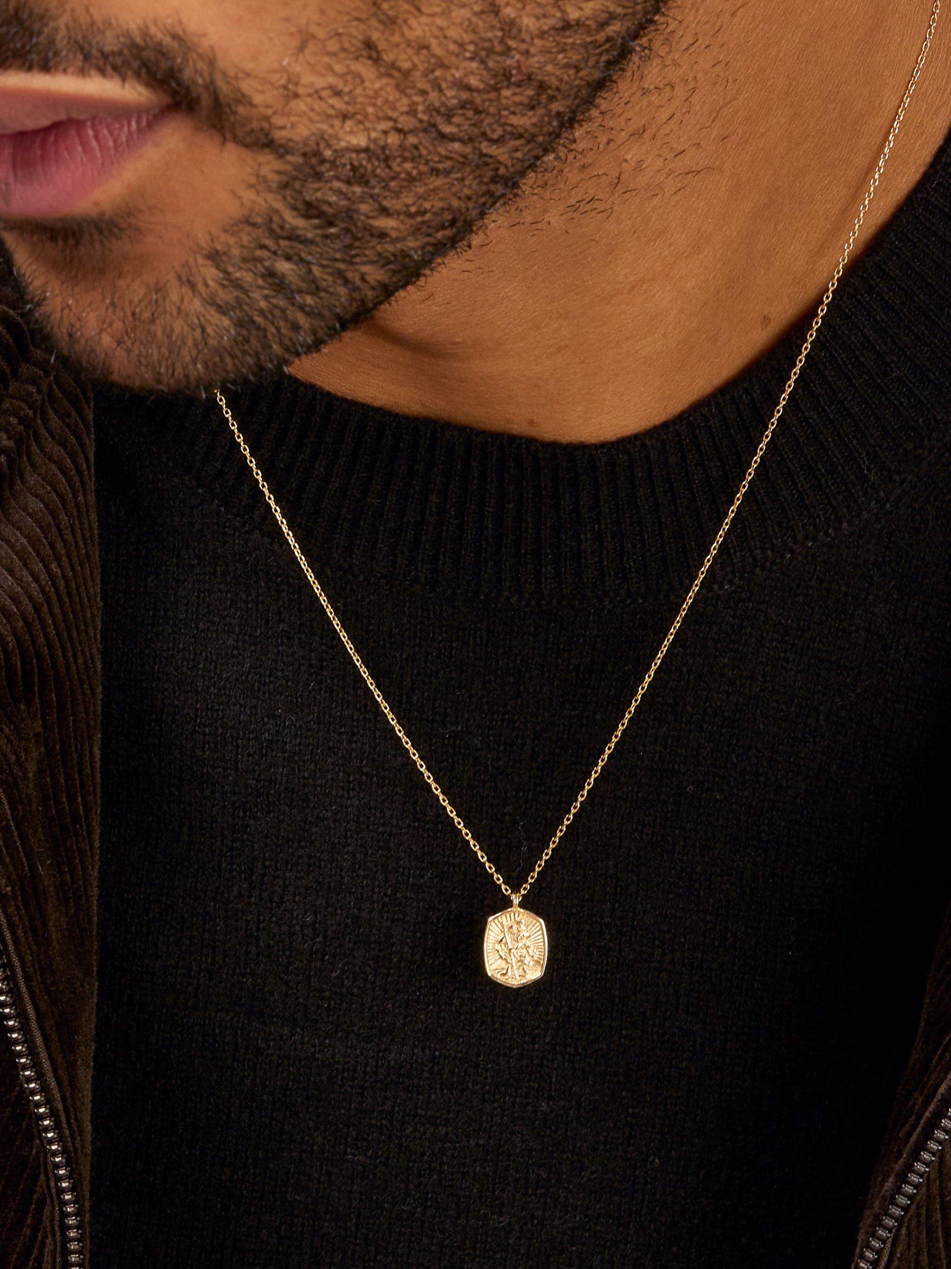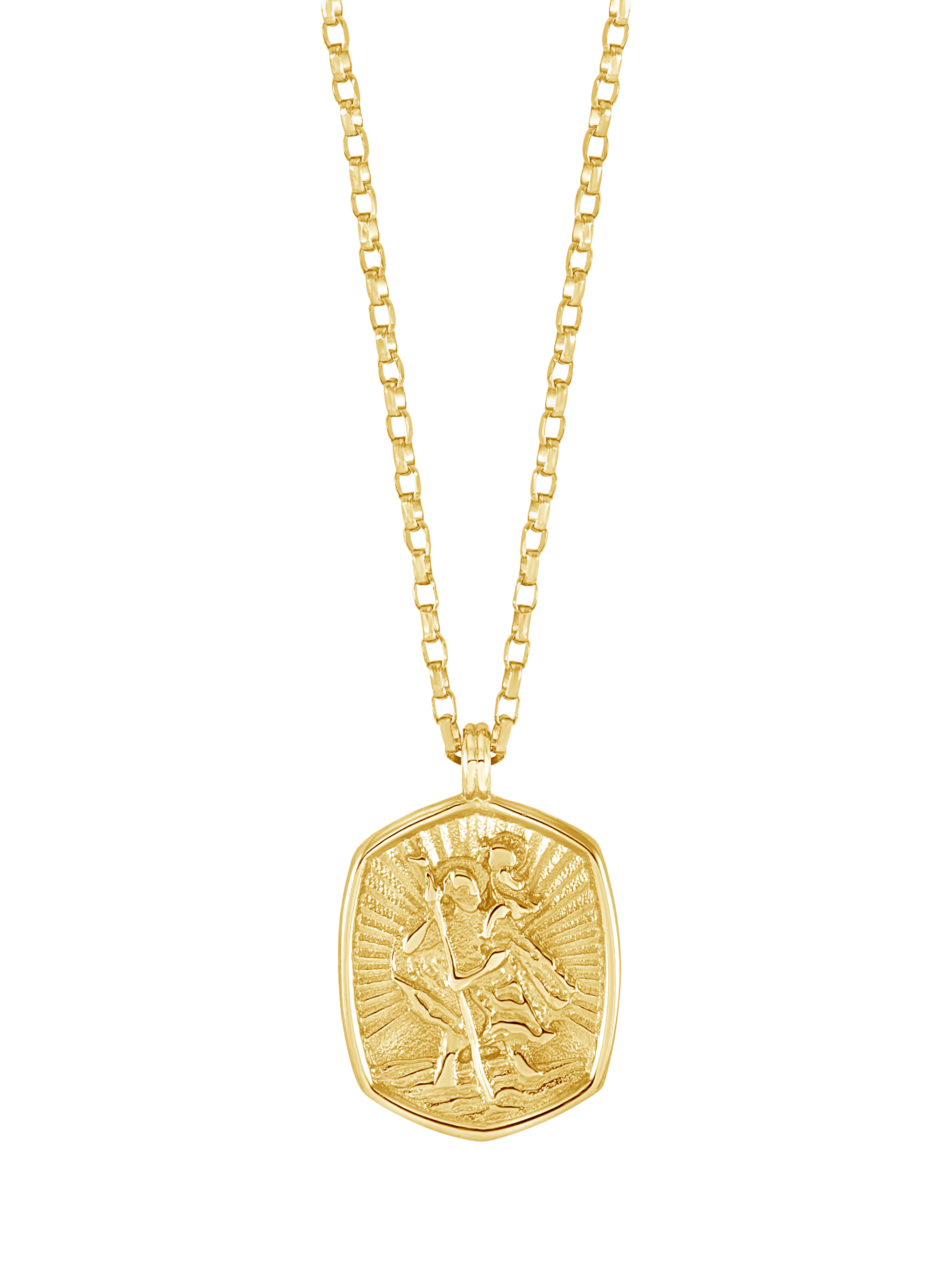 Traditionally given to a loved one who will be travelling, a St. Christopher is seen as a protector to keep them safe on their journey. This necklace is a miniature version of the popular classic St. Christopher Talisman in a hexagonal frame. It is hung on a fine diamond-cut chain. Travel the world and navigate life’s journey protected and guided by your own collection of amulets and talismans.