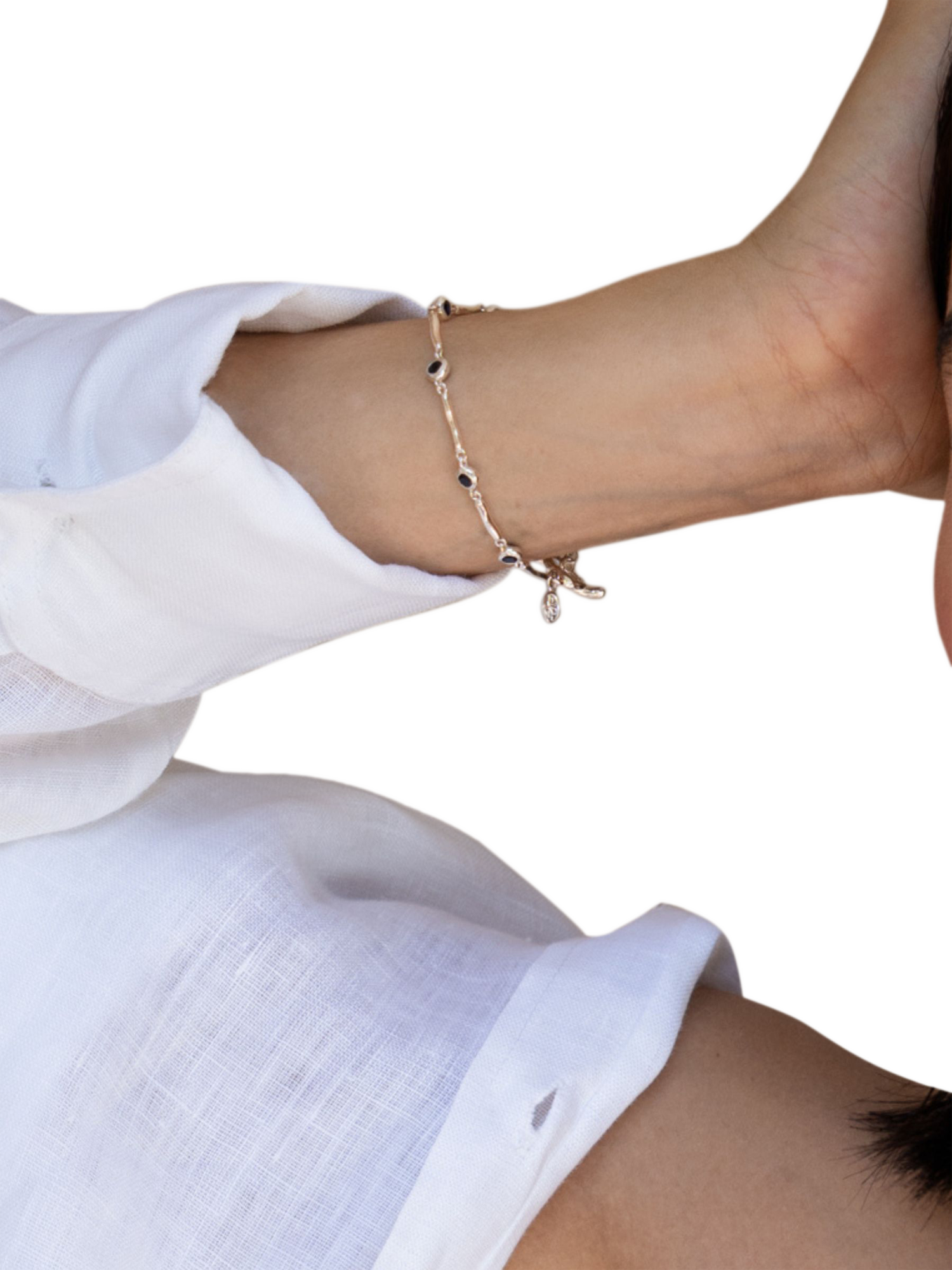 Dower & HallSterling Silver Dewdrop Sapphire Bracelet
