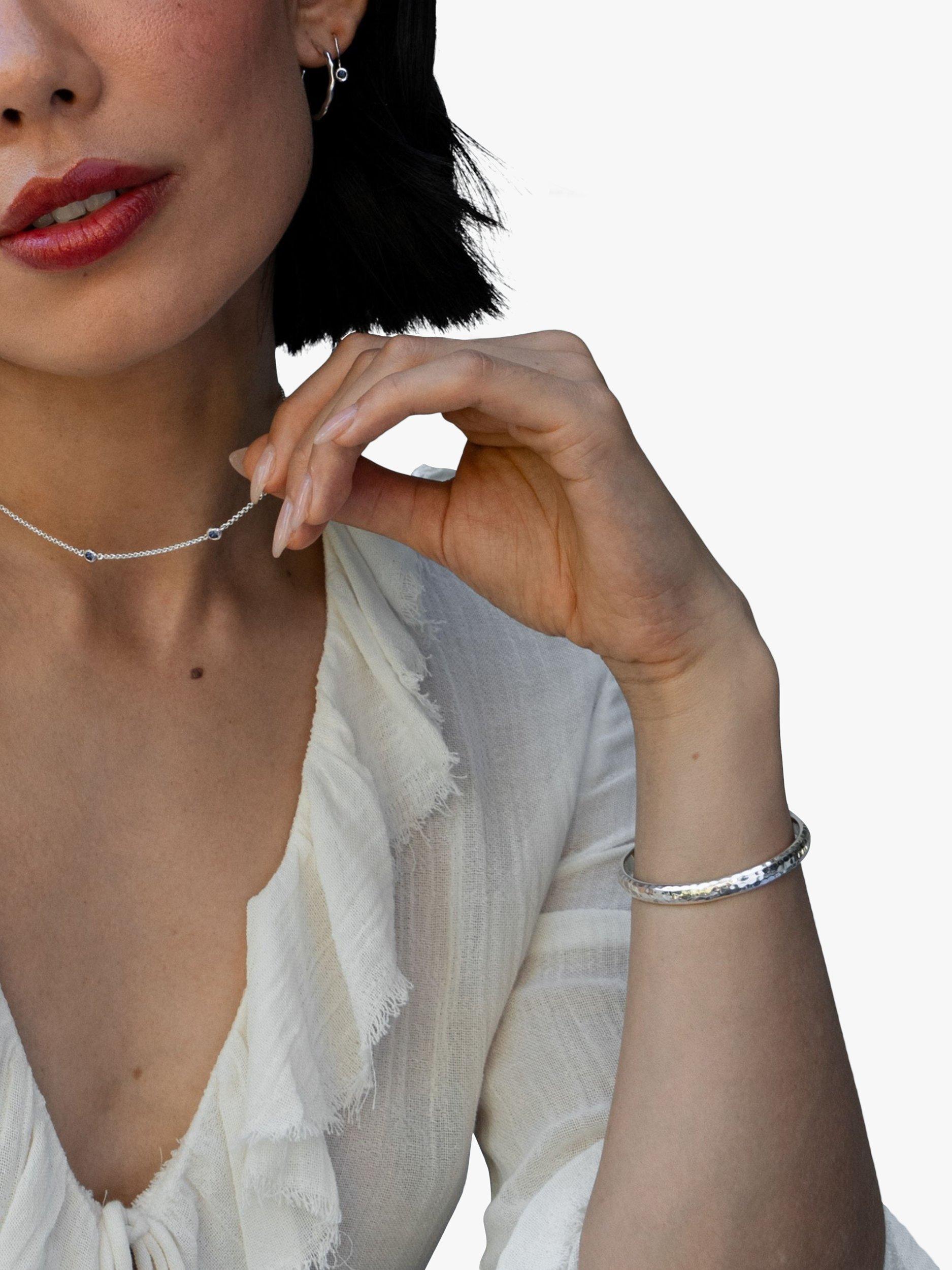 Made from sterling silver, this 6mm hollow hinged bangle from Dower & Hall features the brand's signature hammered texture. Designed with a hinge and easy-to-use clasp that makes on and offs effortless.