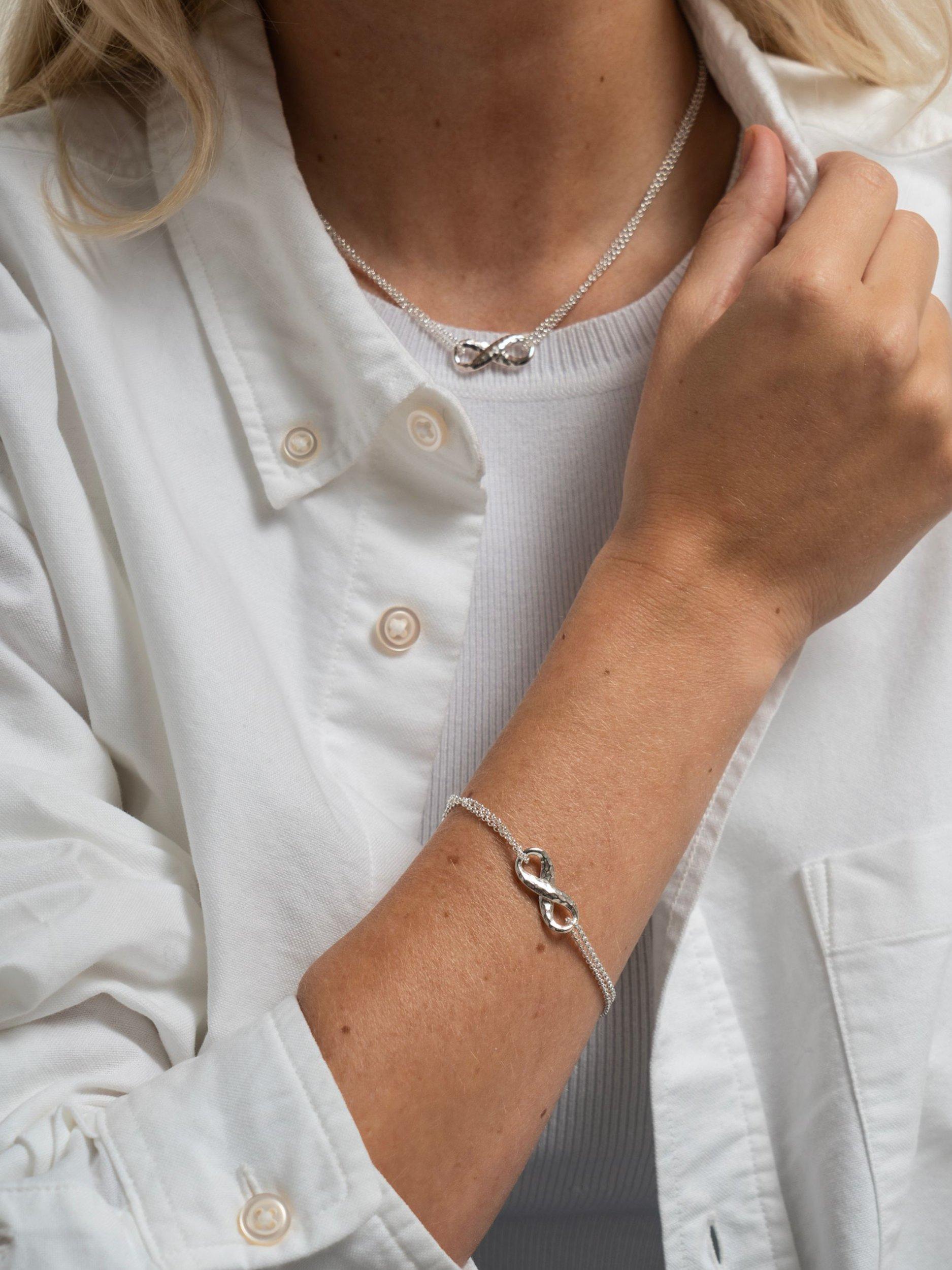 Complement the look with the entwined infinity bracelet.