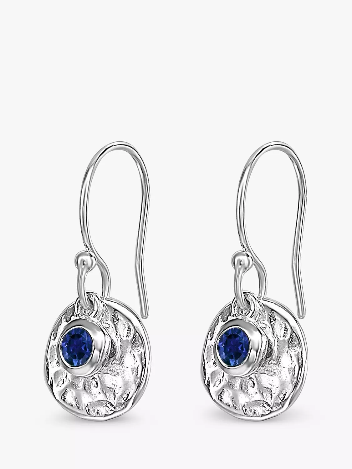 These Dower & Hall earrings come with two pretty charms. One of the charms offers the organic hand-beaten finish, that is found on other pieces from the brand. The round charm is complemented by a small stone pendant in a polished rub-over setting. The earrings are for pierced ears only.