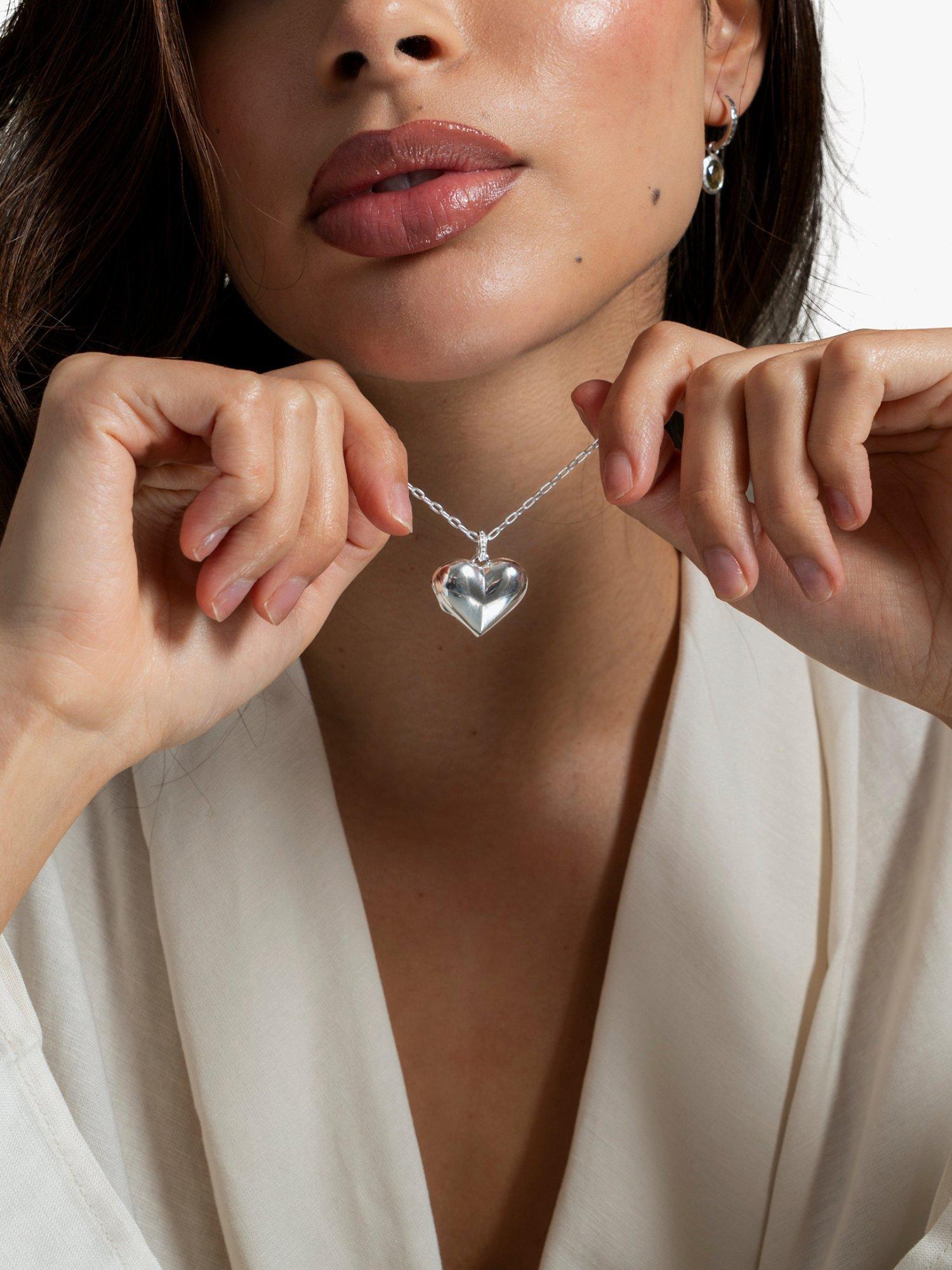 Dower & HallTreasured Heart Locket on Millie-Grain Chain, Silver